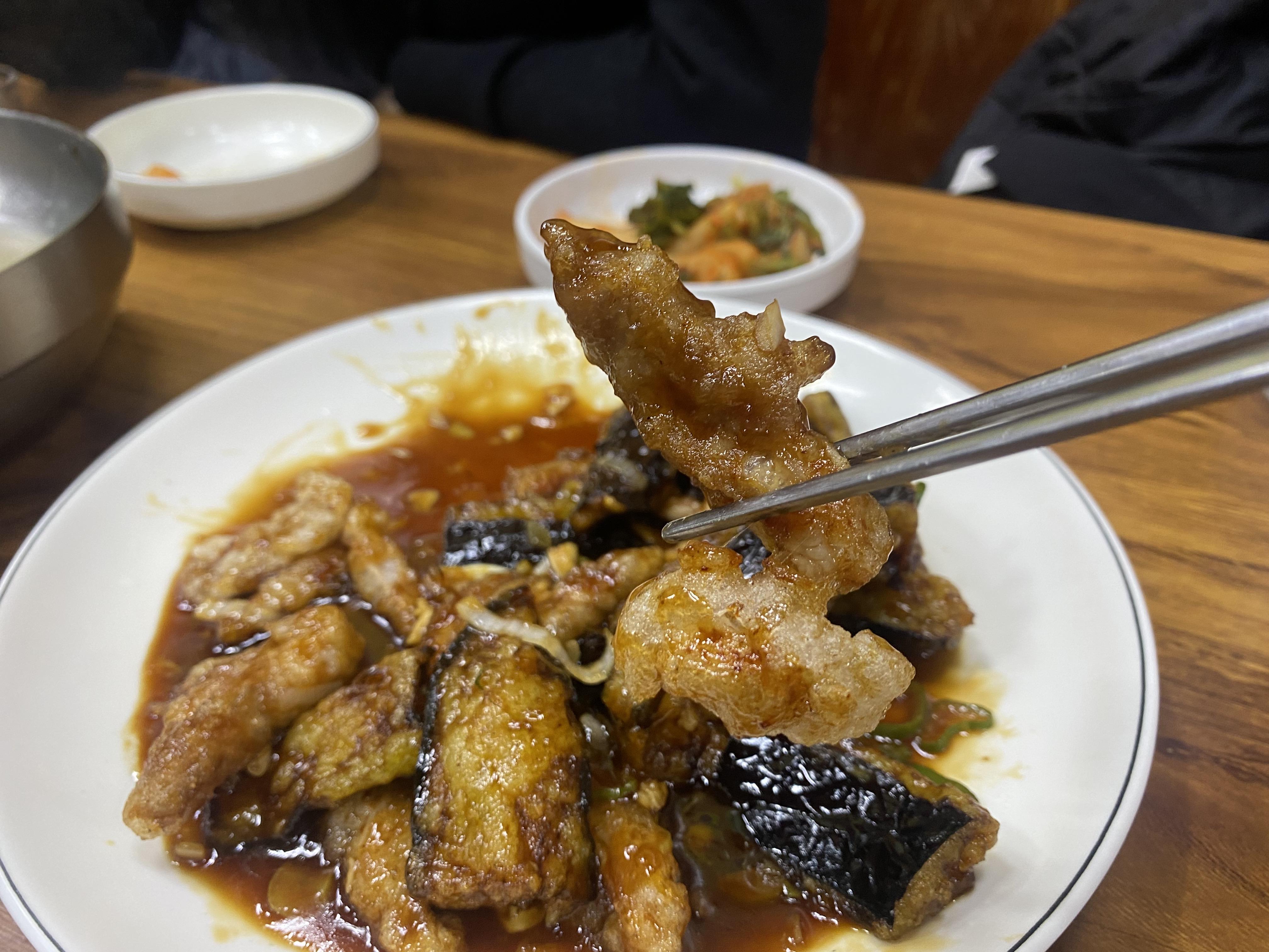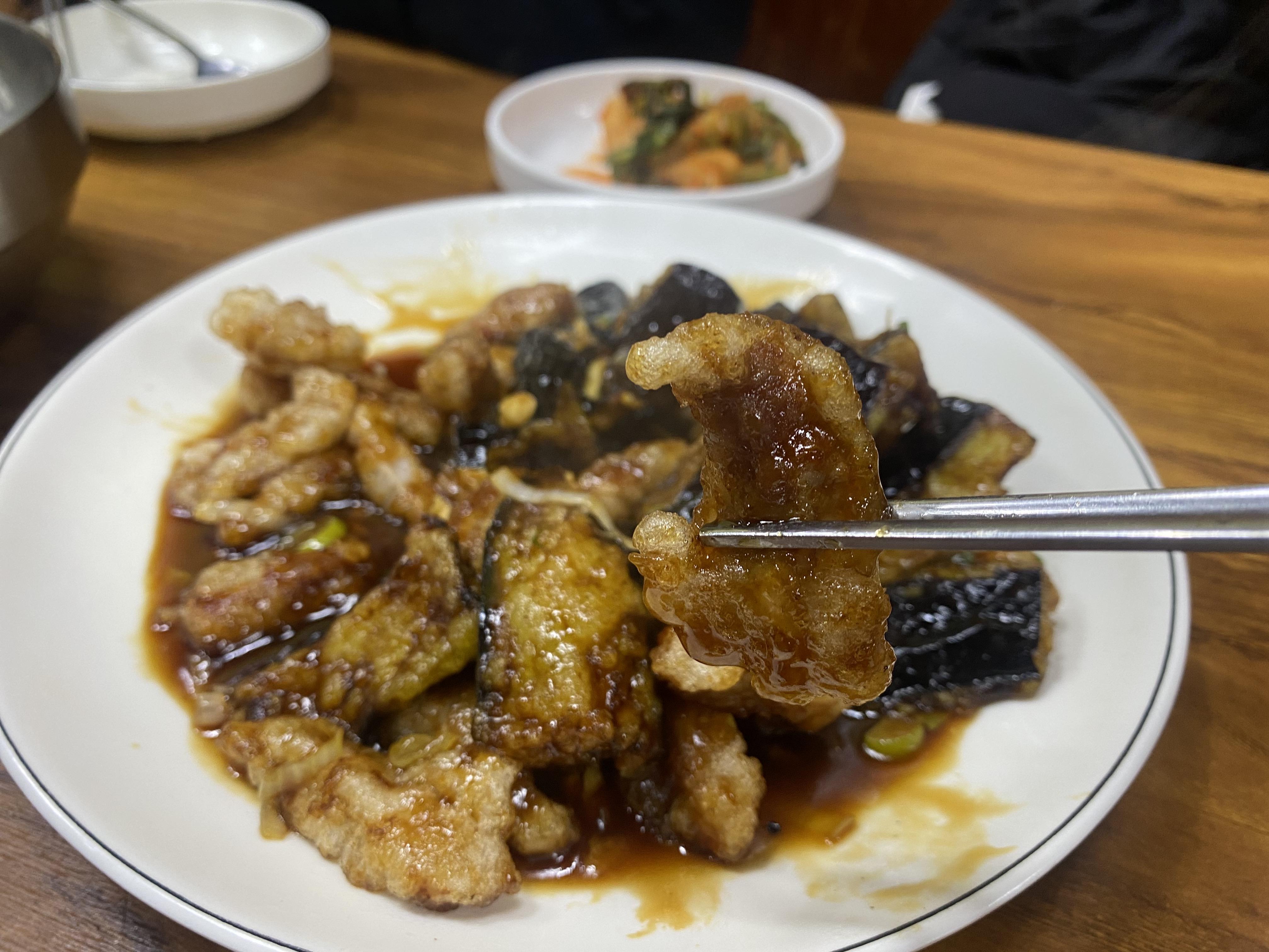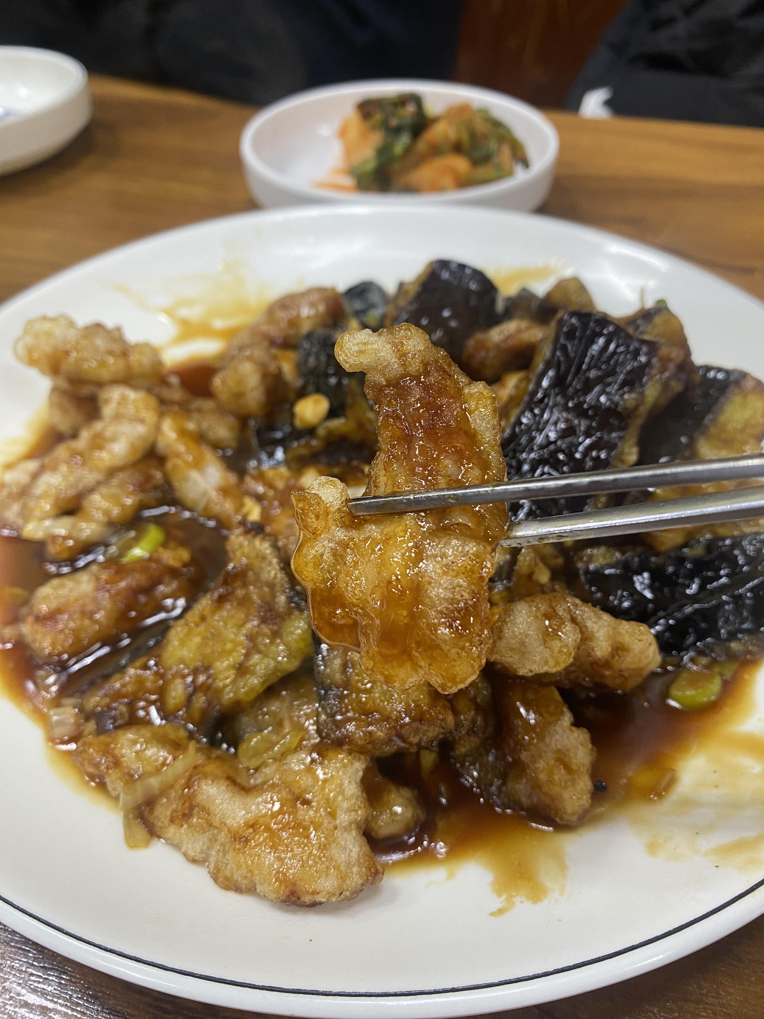 그리고 가지튀김도 흐물흐물하지 않고 바삭하게 튀겨졌습니다. 안에는 부드럽게 씹혀서 가지튀김이 정말 일품입니다. 또한 탕수육도 기존에 알고 있는 양념과는 다르게 진한 맛을 느낄 수 있는 소스와 바삭바삭한 튀김옷을 입힌 탕수육을 한입 먹으면 정말 맛있다는 걸 느낄 수 있습니다.