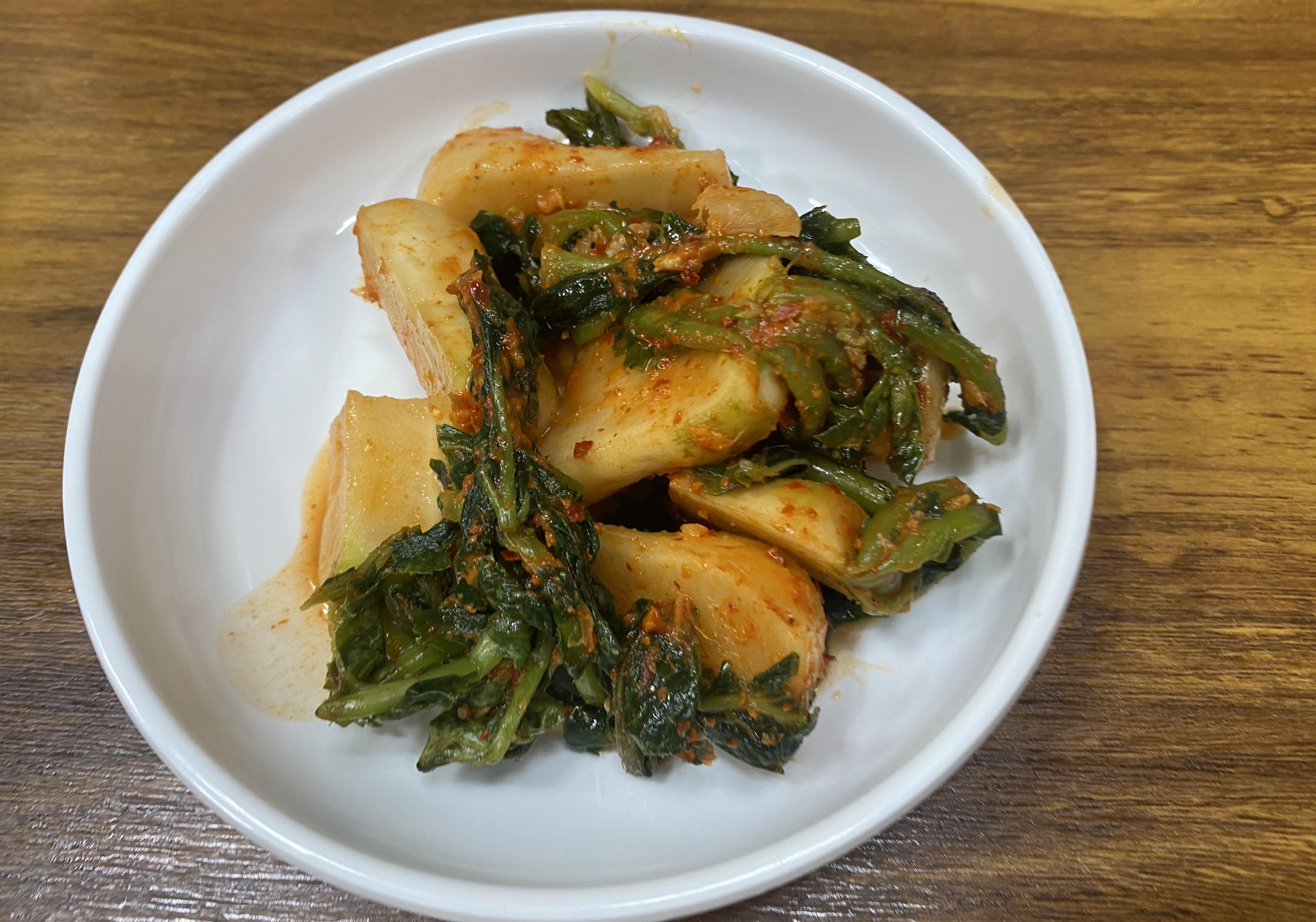 중국 물만두 기본반찬은 그때그때 다르며, 저희가 갔을때는 무김치가 나왔습니다.