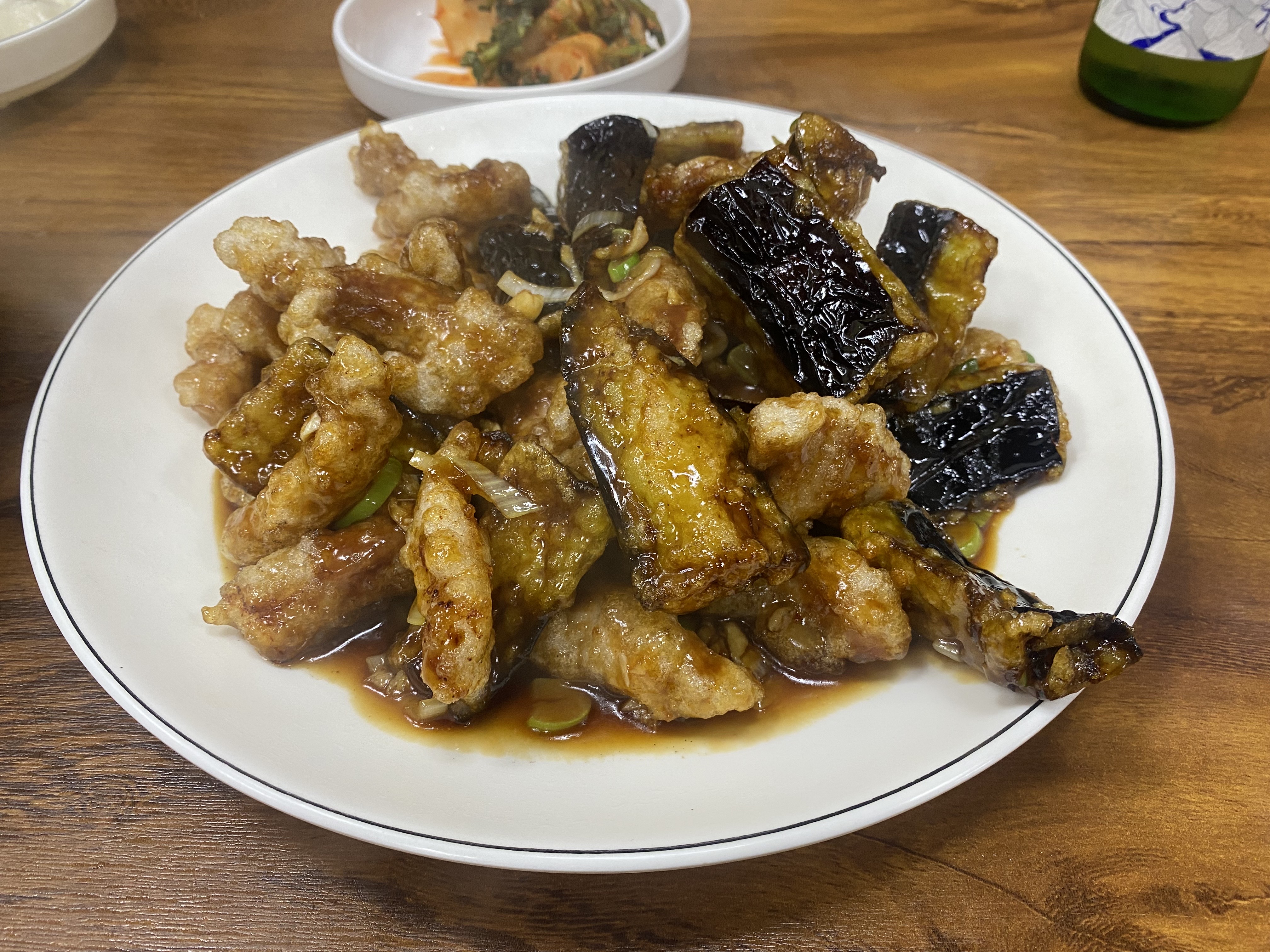 그리고 가지튀김도 흐물흐물하지 않고 바삭하게 튀겨졌습니다. 안에는 부드럽게 씹혀서 가지튀김이 정말 일품입니다. 또한 탕수육도 기존에 알고 있는 양념과는 다르게 진한 맛을 느낄 수 있는 소스와 바삭바삭한 튀김옷을 입힌 탕수육을 한입 먹으면 정말 맛있다는 걸 느낄 수 있습니다.