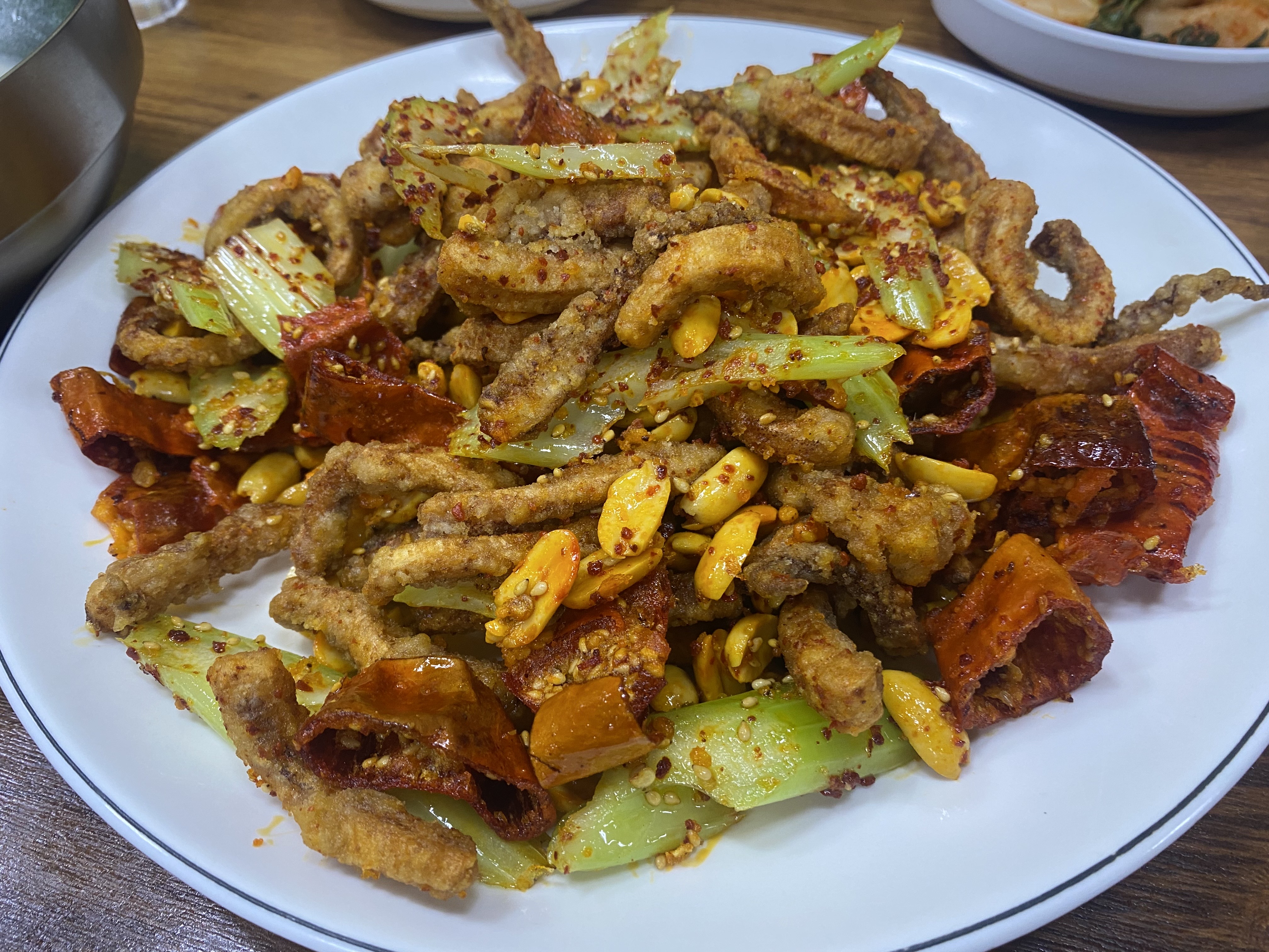 저는 깐밴오징어를 먹고 중국 현지에 놀러 온 기분이 들었습니다. 처음 먹어보는 맛이었는데 제 입맛에는 정말 딱 맞아서 맛있게 먹었습니다. 향신료가 그렇게 강하지도 않고 고소하고 짭짜름한 게 입에 계속 들어갑니다. 튀김오징어와 땅콩, 고추튀김과 함께 먹으면 정말 맛있습니다.