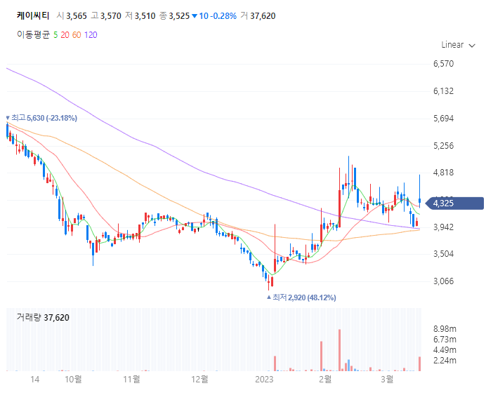 케이씨티 일봉차트