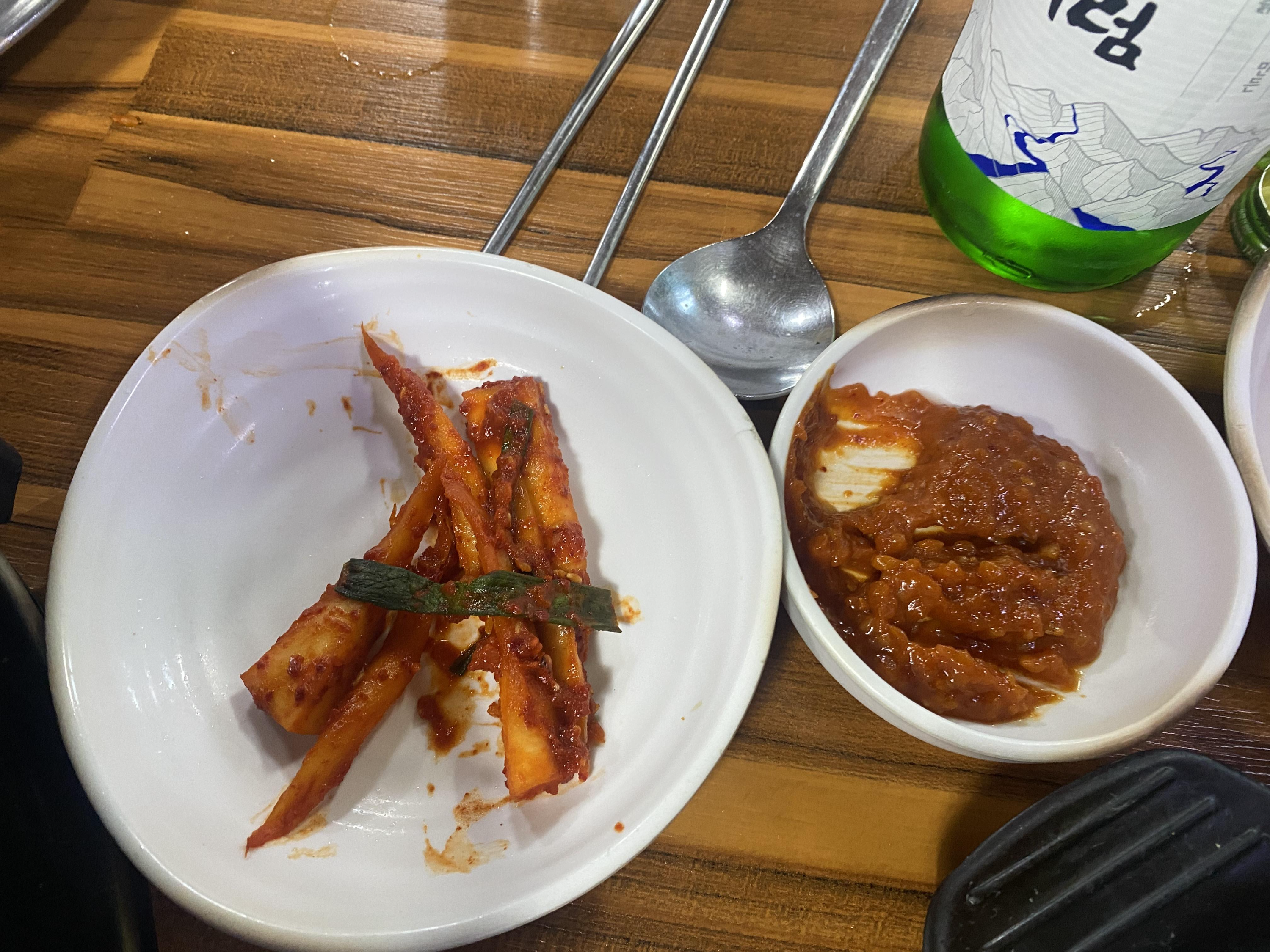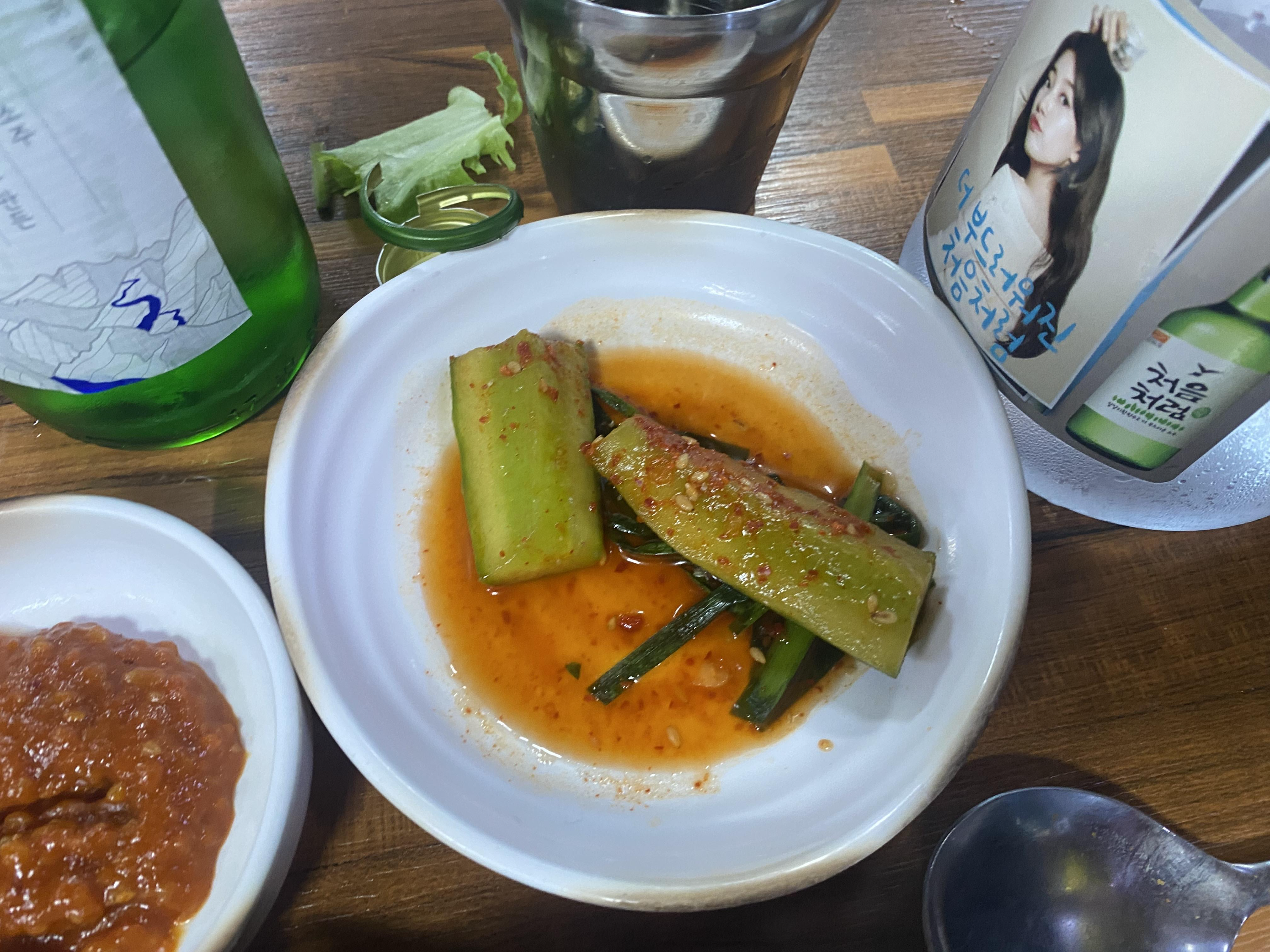 기본반찬은 그때그때 다르지만 저희가 갔을때는 무채, 더덕무침, 오이무침, 감자조림, 나물등이 있습니다. 생삼겹살 가격이 저렴해서 기본반찬이 많이 없을 줄 알았는데 기본반찬도 집에서 먹는 느낌이었습니다. 특히 감자조림이 맛있었습니다.