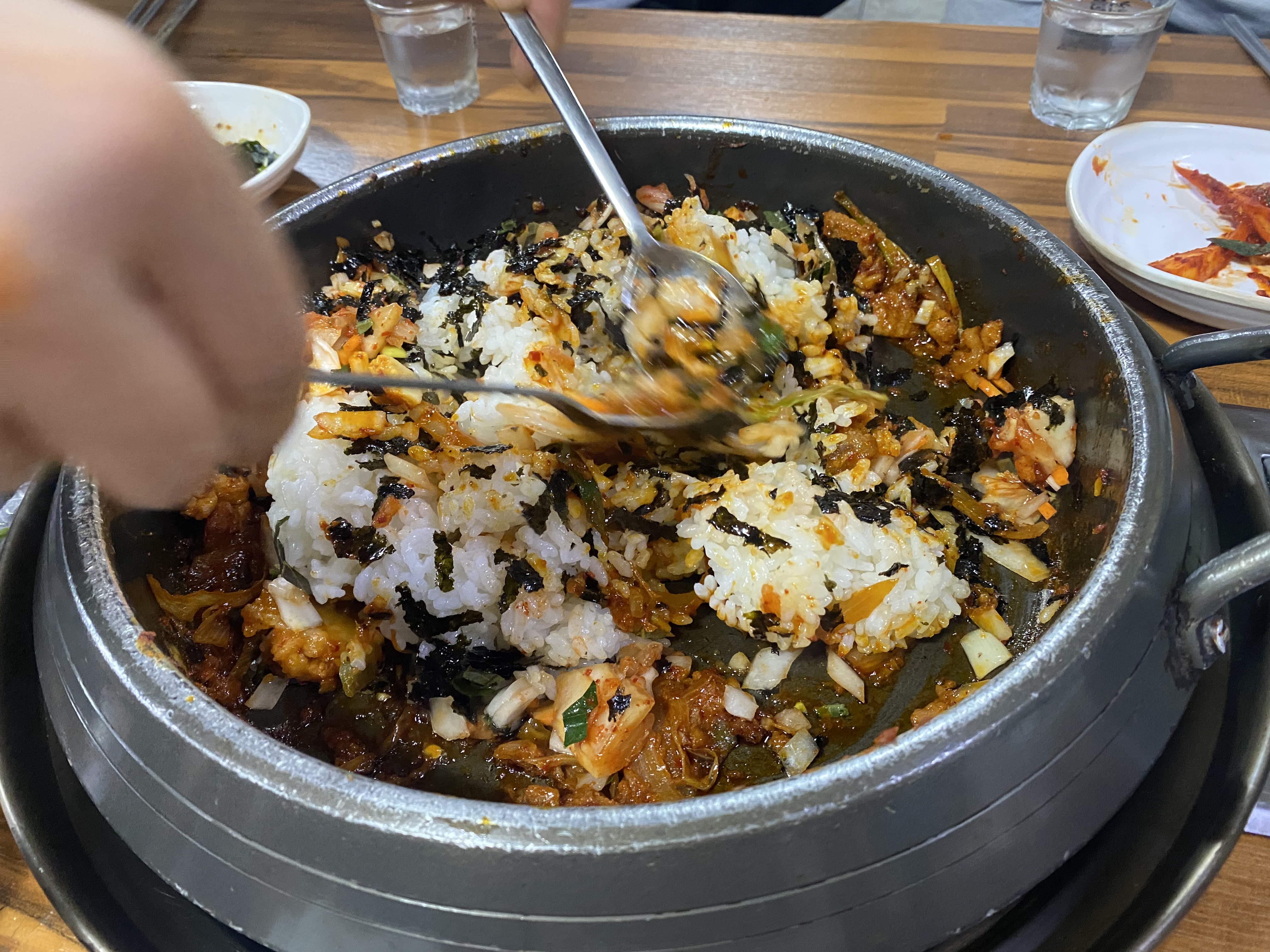 볶음밥 비비는 중