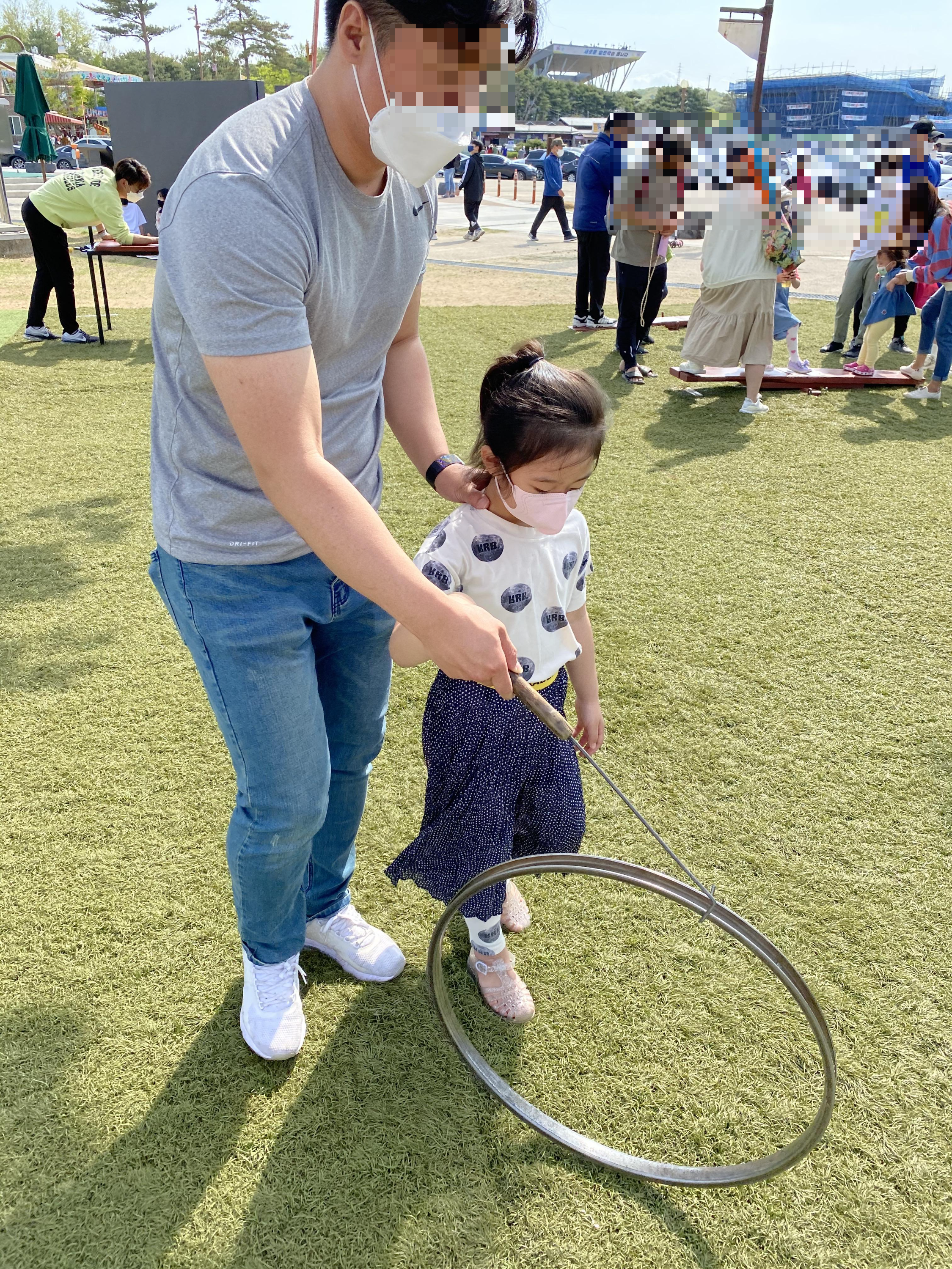 임진각 평화누리공원에 전통놀이체험장에는 다양한 전통놀이들이 마련되어 있습니다. 사람들이 많아서 다 체험은 못했지만 굴렁쇠 굴리기, 제기차기 등을 체험했습니다.