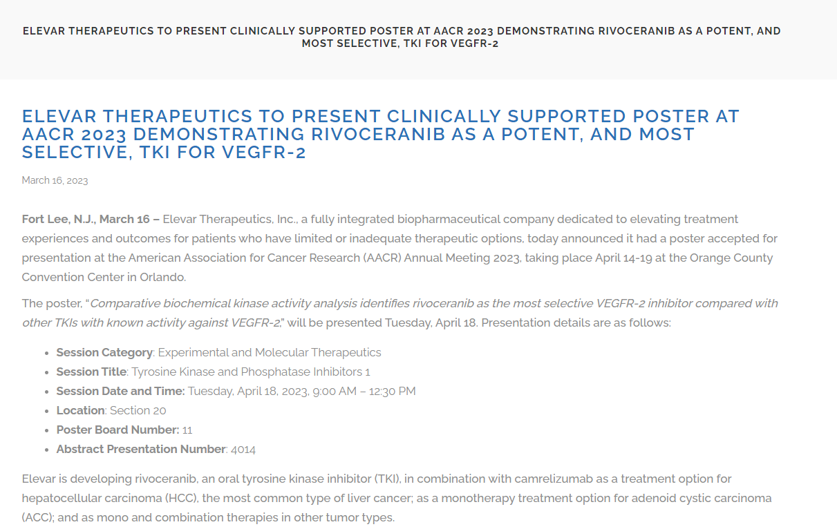 엘레바는 리보세라닙의 간암 1차 치료제 글로벌 3상을 마치고 2023년 5월 미국 식품의약국(FDA)에 신약허가신청을 준비 중에 있습니다. 미국 신약신청 후 곧바로 유럽 등 주요 시장에 대한 허가 절차도 진행할 예정이서 다국적 제약사와의 파트너링 논의를 진행할 계획이라고 합니다.