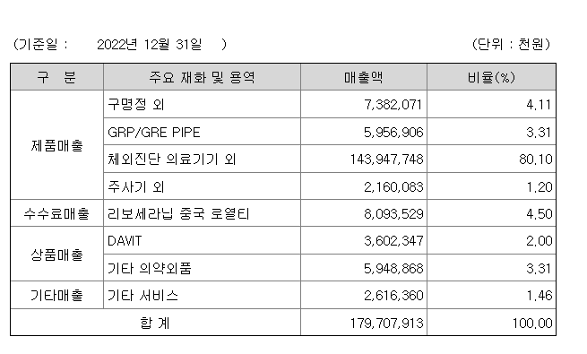 제품매출 구분을 보면 대부분의 매출이 체외진단 의료기기 외 부분에서 약 80%의 비율로 발생하고 있는 걸 알 수 있습니다. 현재 리보세라닙의 중국 로열티는 약 4.5%입니다.