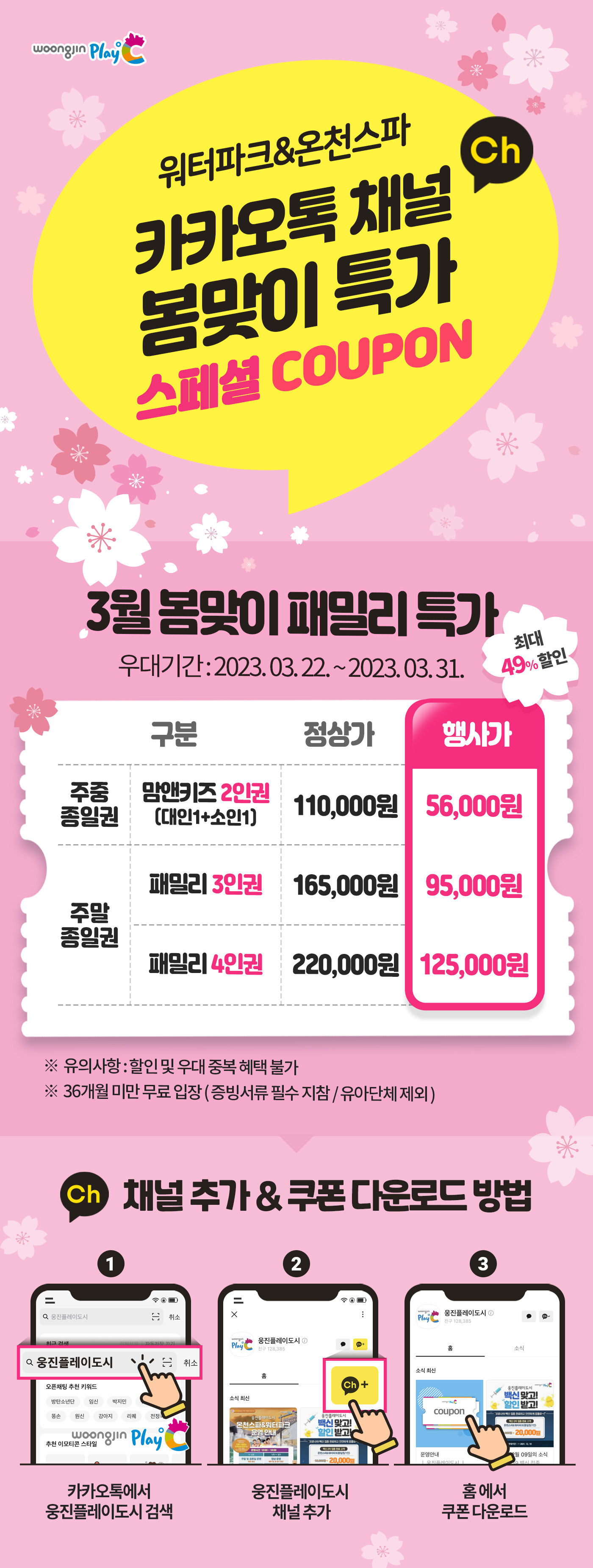 3월 22일~3월 31일까지 카카오톡에서 채널추가를 하시면 최대 49% 할인쿠폰을 증정하고 있습니다.