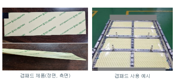 갭패드는 배합공정을 통해 생성된 배합물의 상, 하단부에 필름을 대고 열과 압력을 가하여 고체 형태로 형태를 고정시키는 성형공정을 거쳐 제조합니다. 갭패드는 경화가 된 상태로 고객이 원하는 규격, 모양으로 제품이 출고되기 때문에 고객 입장에서 제품을 경화시킬 필요 없이 곧바로 사용이 가능한 장점이 있습니다.
