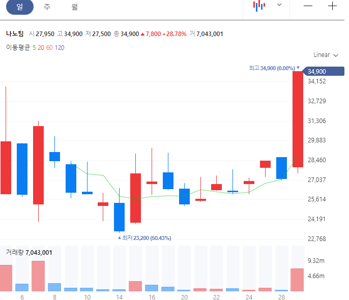 일봉차트를 보시면 공모가를 하회하다가 3월 29일에 공모가를 회복하고 신고가를 달성했습니다. 거래대금이 아쉽지만 신고가 영역이기 때문에 기대를 할 수 있는 종목인 거 같습니다. 하지만 신규주는 항상 주의해야 합니다.