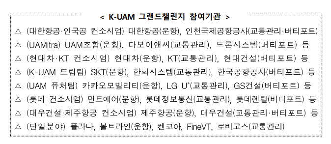 국토교통부(장관 원희룡)는 2월 22일(수) 오전 10시, 서울 그랜드하얏트호텔에서 한국형 도심항공교통 실증사업(K-UAM 그랜드챌린지*) 1단계 참여기업들과 협약식을 체결한다고 밝혔습니다.