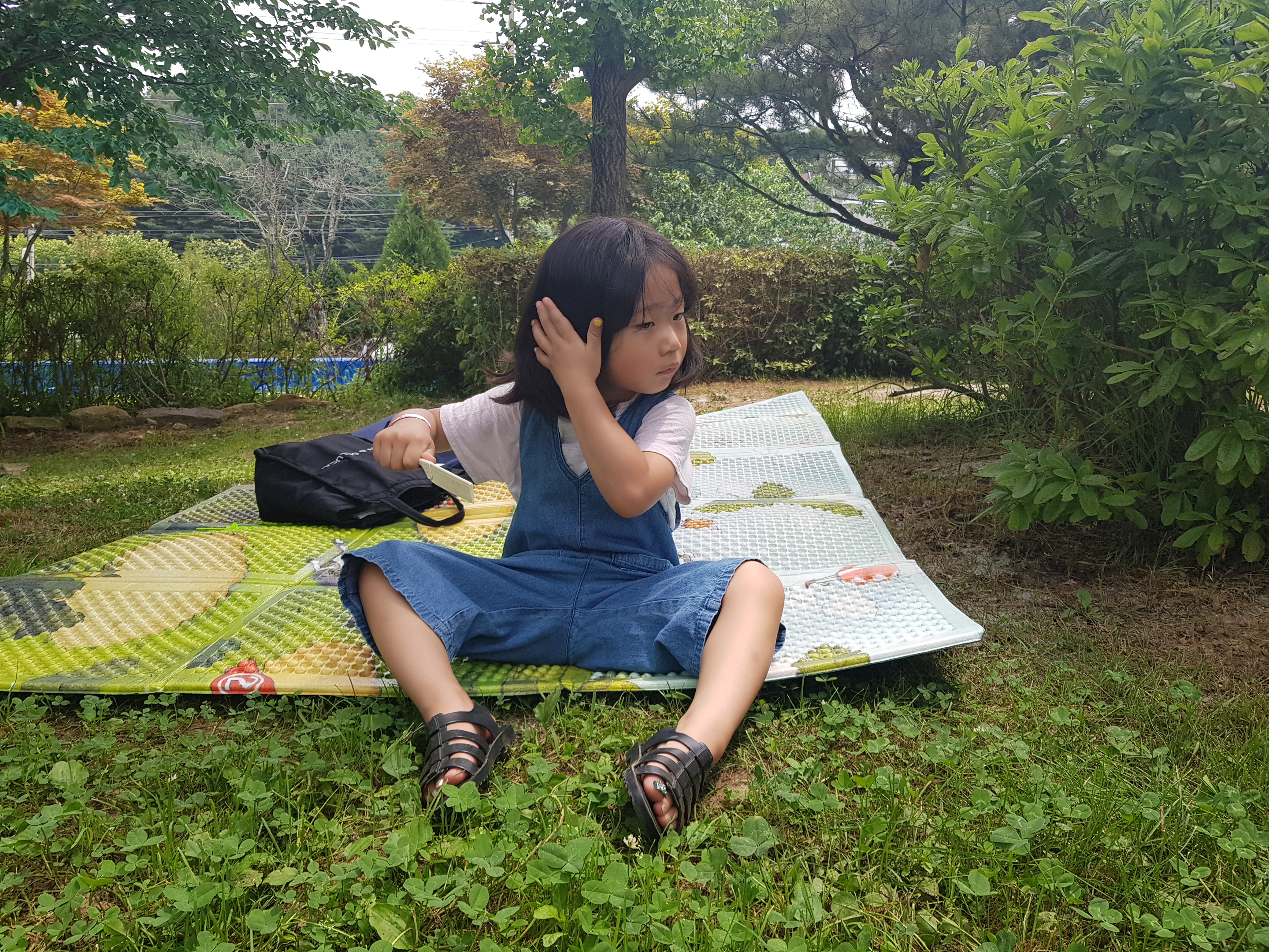 옥토끼우주센터 야외테마공원에는 신나는 썰매장과 은하수 유수풀, 공룡의 숲, 사계절 썰매장, 물대포 공원, 로봇공원, 토끼의 성, 로고스 가든, 신들의 샘, 전망쉼터가 있습니다. 저희는 돗자리만 챙겨와서 따로 유수풀이나 썰매장은 이용 못하고 공원만 돌아다녔습니다.