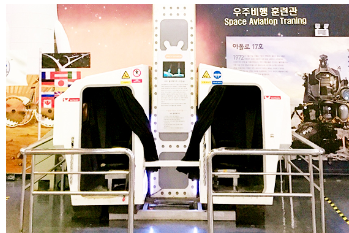 우주체험기구는 사이버 인 스페이스, 6인 우주 엘리베이터,지포스(중력가속도 체험), 코스모프호, MMU, 미래도시 꼬마기차가 있습니다.