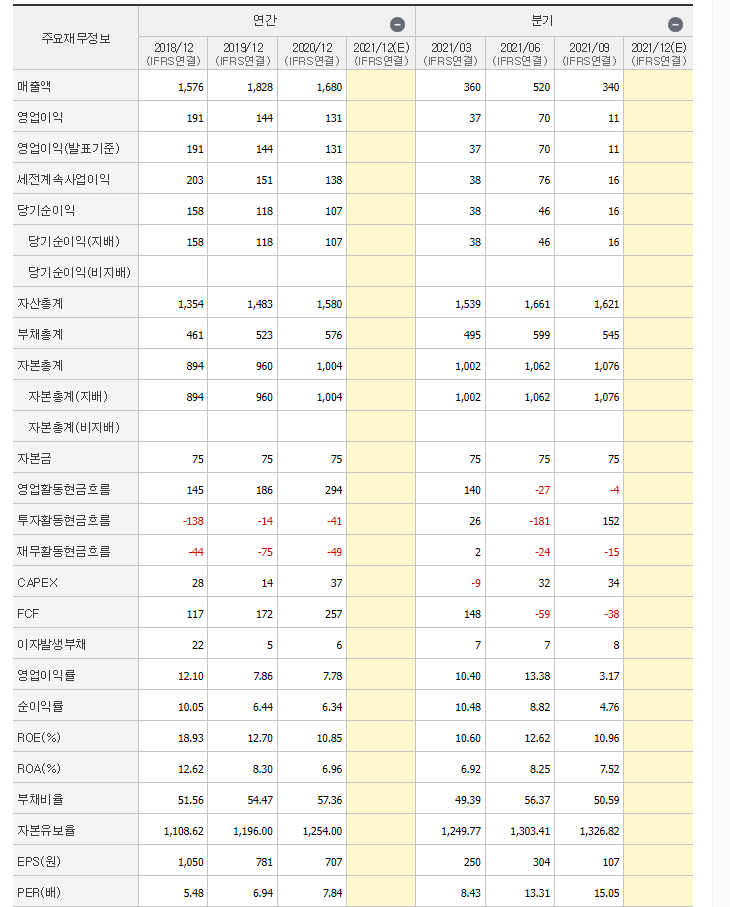 시가총액은 약 3,000억 원이므로 적당한 평가를 받고 있는 듯합니다.