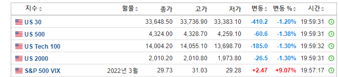VIX지수 또한 +9%로 공포감을 극대화하고 있는 시장입니다.