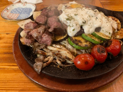 와규 블랙타이거는 까져있는 새우와 스테이크의 조합으로 나오는 철판요리입니다. 일반 와규 스테이크와 블랙타이거가 있지만 두가지 맛을 함께 볼 수 있는 와규 블랙타이거가 가장 많이 판매되는 메뉴입니다.