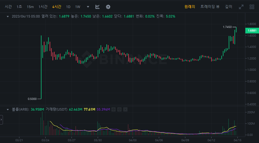 아비트럼은 0.5달러의 상장을 해서 1.7달러까지 상승을 하고 있습니다. 상장일 가격보다 상승을 하면서 추세를 이어가고 있습니다. 이더리움의 상승세와 아비트럼의 상승세가 무섭게 오르고 있습니다.