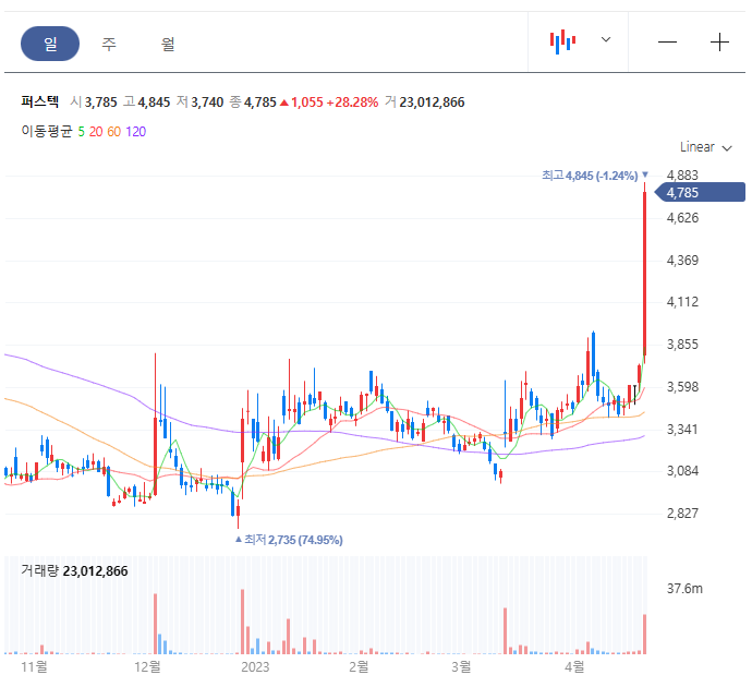 퍼스텍 일봉