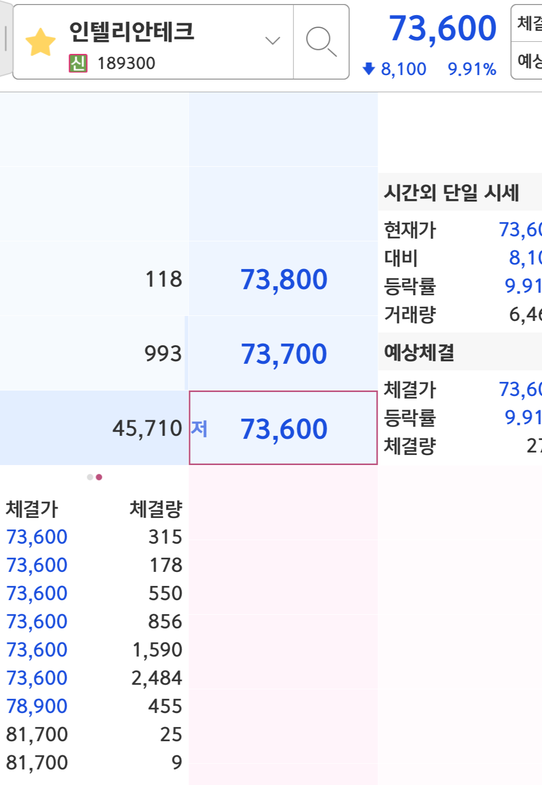 인텔리안테크의 유상증자 결정 소식에 시간 외 단일가에서는 하한가를 맞았습니다. 시장에서는 유상증자 결정이 악재로 판단하는 거 같습니다. 오히려 저는 기회라고 생각을 하고 원하는 매수가까지 오면 매수를 하겠습니다.