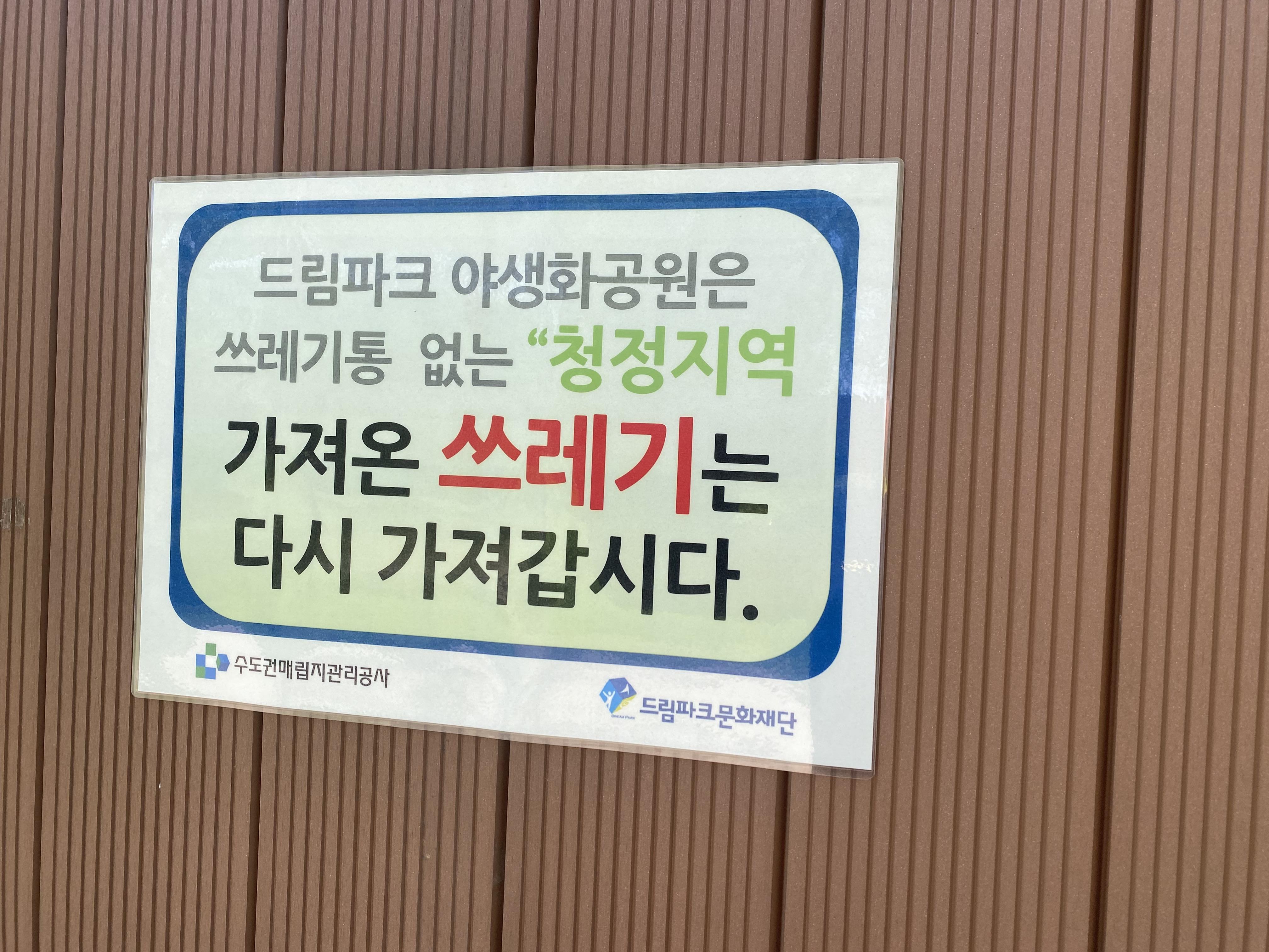 드림파크 야생화공원은 쓰레기통 없는 청정지역이기 때문에 가져온 쓰레기는 다시 가져가셔야 합니다!