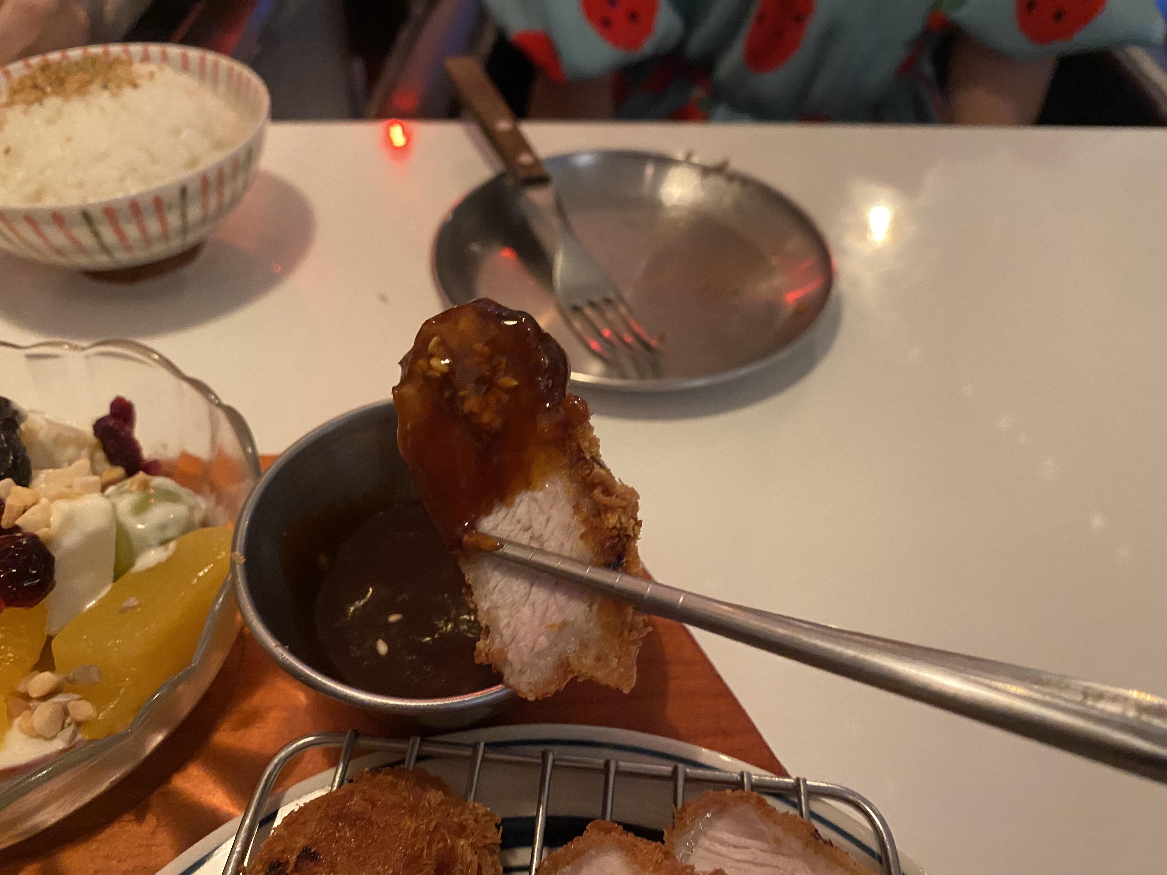 프리미엄 카츠는 엄격한 심사를 거친 선별육인 등심만을 사용하며 72시간 이상 숙성시켜서 100% 수제로 만들어서 제공됩니다. 튀김의 바삭함과 부드러운 고기육감이 감탄이 절로 나왔습니다.