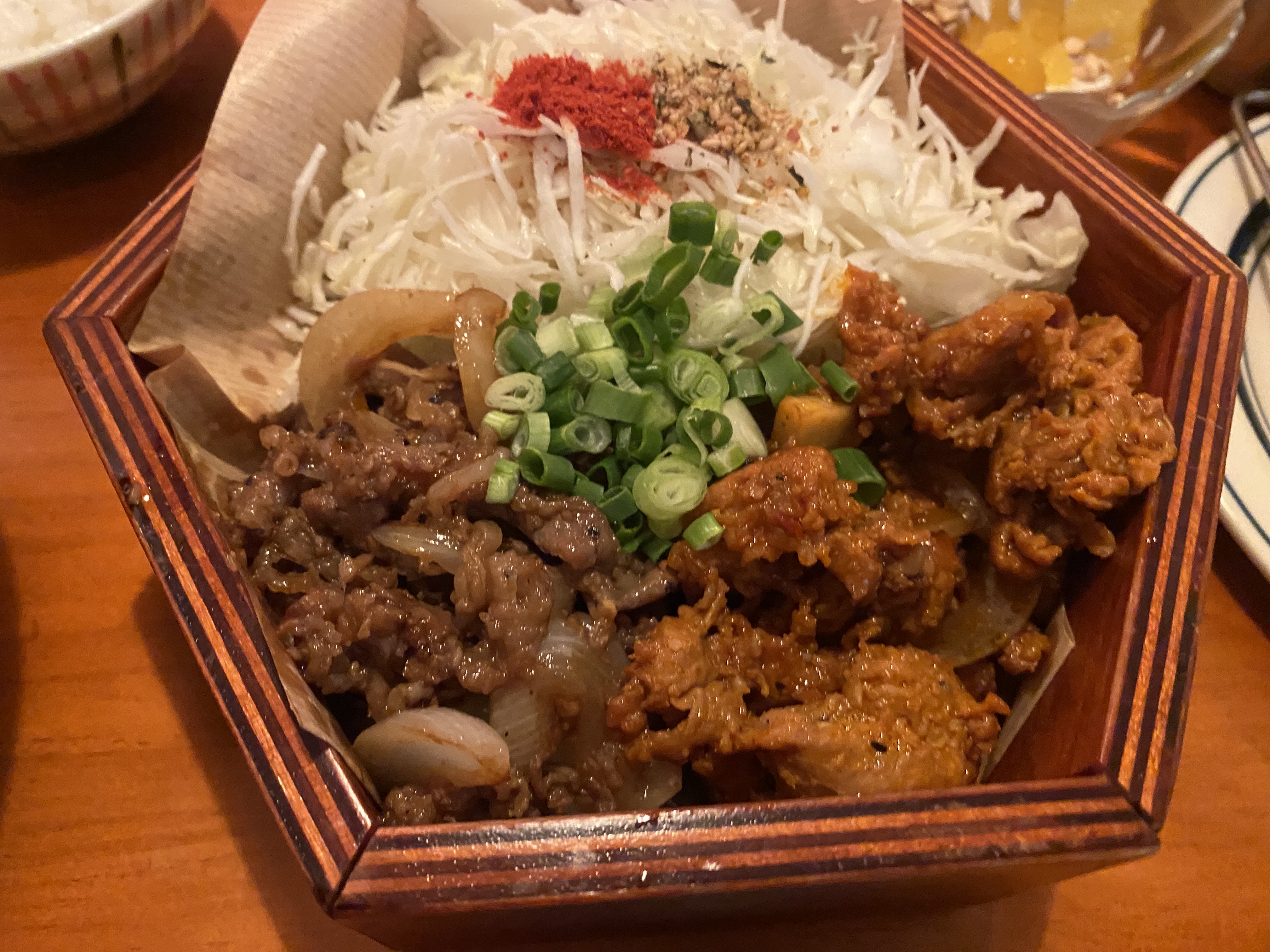 반반구이 토끼밥상은 매콤한 돼지고기랑, 담백한 소고기 구이와 돈까츠와 우동을 선택해서 먹을 수 있습니다.