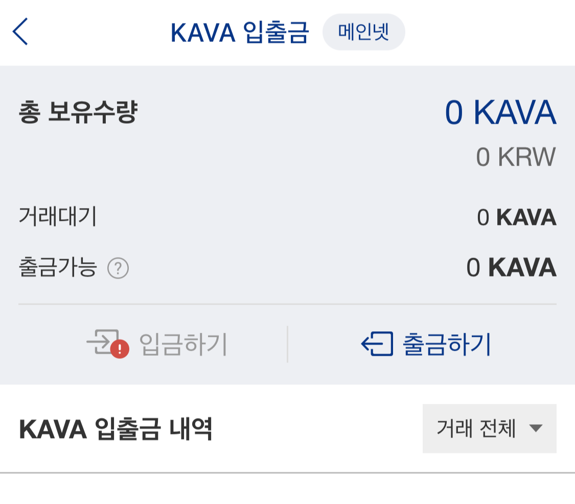 카바(KAVA)의 업비트 입출금 내역을 보시면 현재 유의종목 지정으로 입금을 지원하지 않고 있는 모습입니다. 특정 거래소에서 입금이 불가하여 발생하는 가두리 펌핑이라고 예상할수 있습니다. 말 그대로 업비트 거래소 내에서만 거래가 가능하기 때문에 물량을 가지고 있는 주체가 펌핑을 시키는 것입니다. 간혹 이런 경우가 있는데 결국은 해외거래소 가격과 맞쳐지기 때문에 유의해서 투자를 해야 합니다.