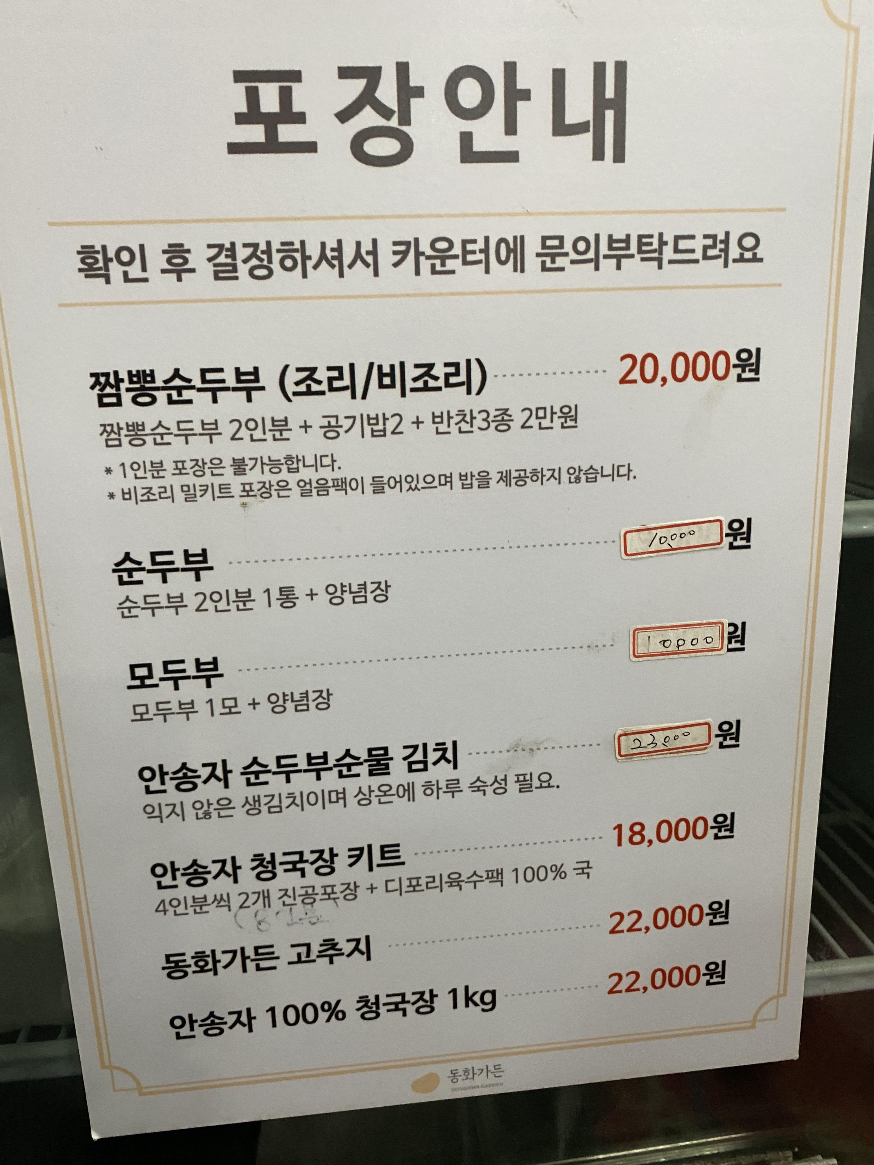 짬뽕순두부 포장도 따로 판매를 하고 있습니다. 저희는 그냥 식당에서 먹는 게 좋아서 따로 포장은 하지 않았습니다.