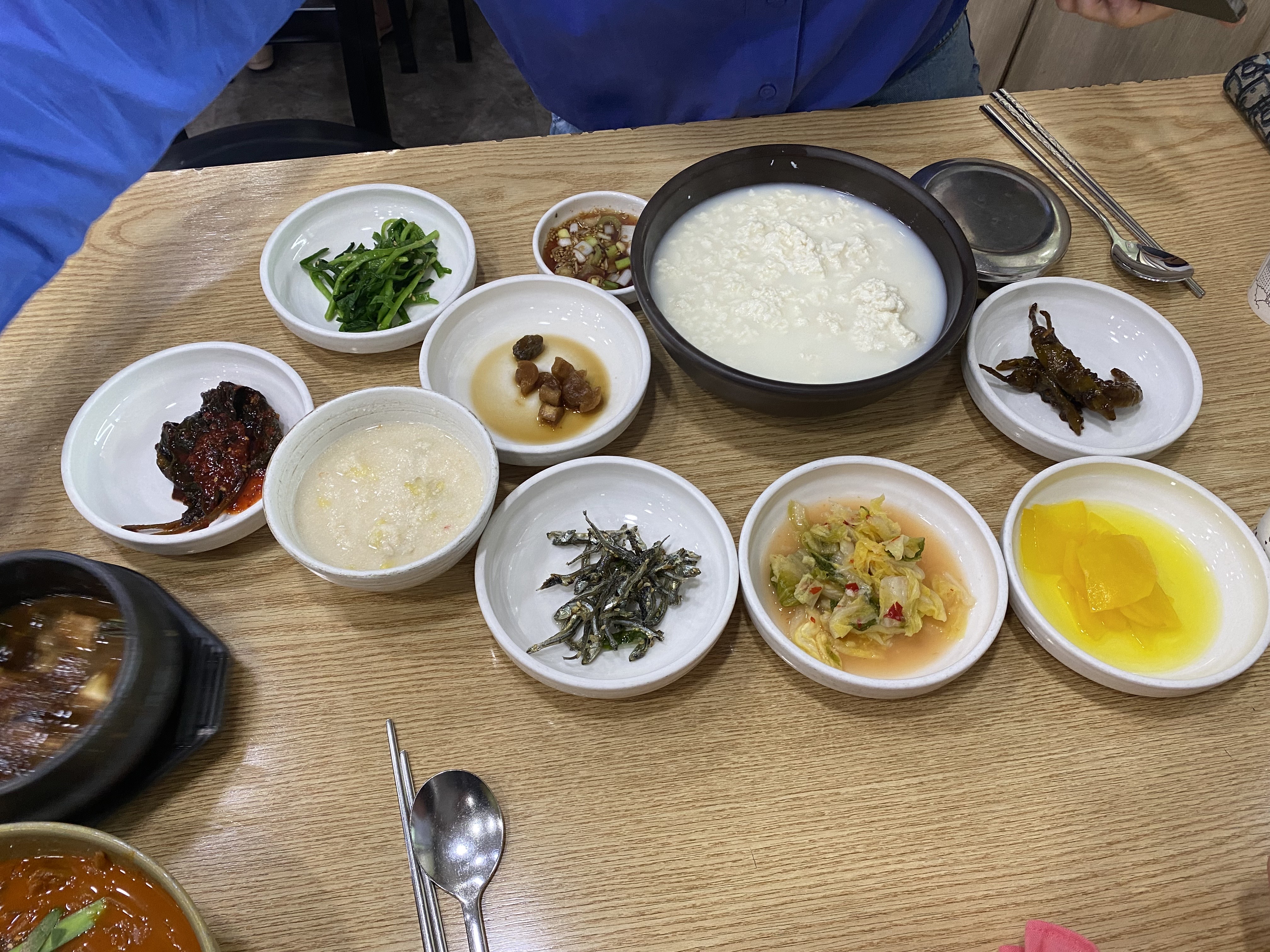 아이가 먹을수 있는 초두부백반을 주문했습니다. 깻잎, 멸치, 콩비지, 청국장이 나옵니다.