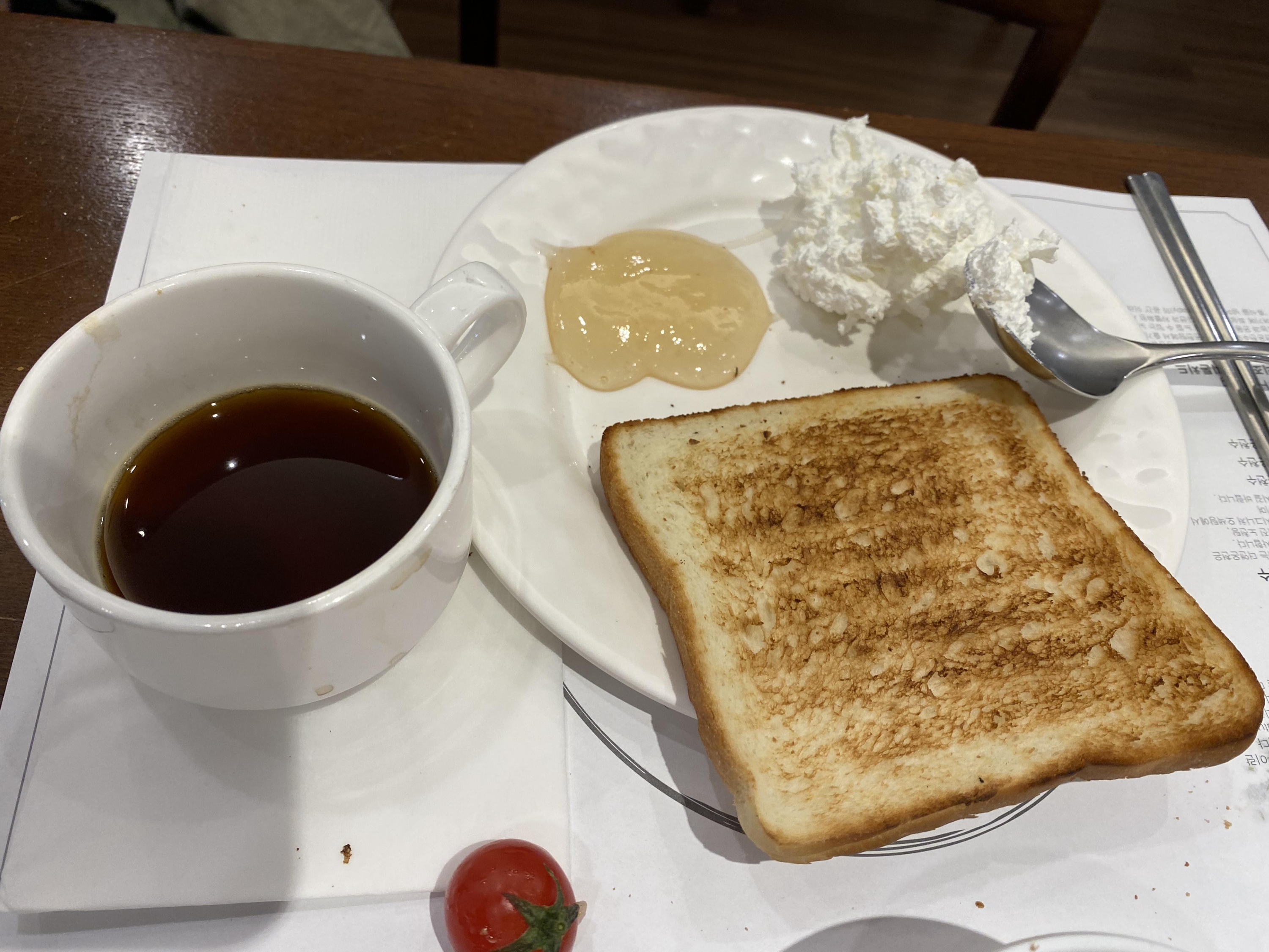 후식으로는 식빵과 디저트, 그리고 커피를 먹었습니다. 딸은 쌀국수를 먹고 싶다고 해서 퍼왔는데 한입 먹고 안 먹더라고요.