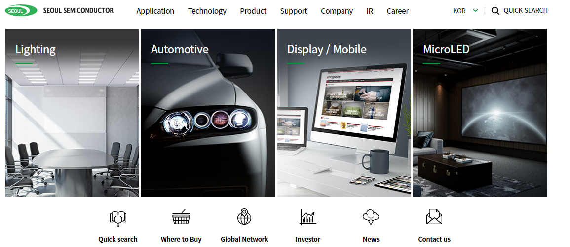 서울반도체는 일반조명, IT, 자동차, UV 등 광범위한 분야에 적용되는 LED 제품을 연구개발, 생산, 판매하는 종합 LED 기업입니다.