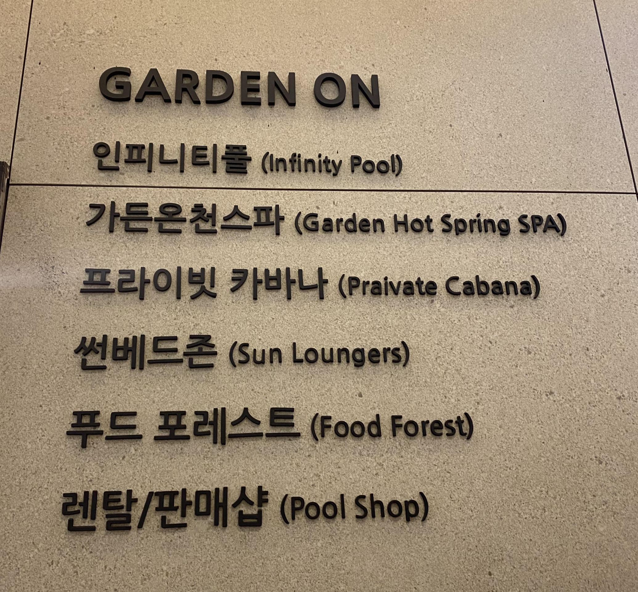 솔직히 이름이 헷갈렸습니다. 더앤온천인지 가든온인지 수영장인지 헷갈렸는데 이정표를 보고 대충 알았습니다.
