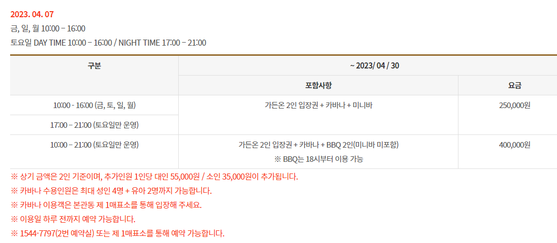 가든온 정상가 : 대인 - 110,000원 / 소인 70,000
