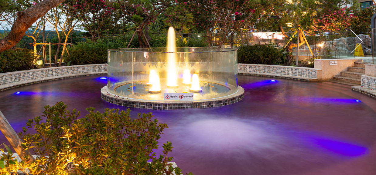 더앤리조트 가든온은 지하 823m에서 용출되는 천연 미네랄이 다량 함유된 약알칼리성 온천입니다. 하루에 약 1,000톤 이상 풍부하게 공급되는 온천수로서 사우나와 하늘과 이어진 듯한 노천온천은 더앤리조트의 자랑입니다.