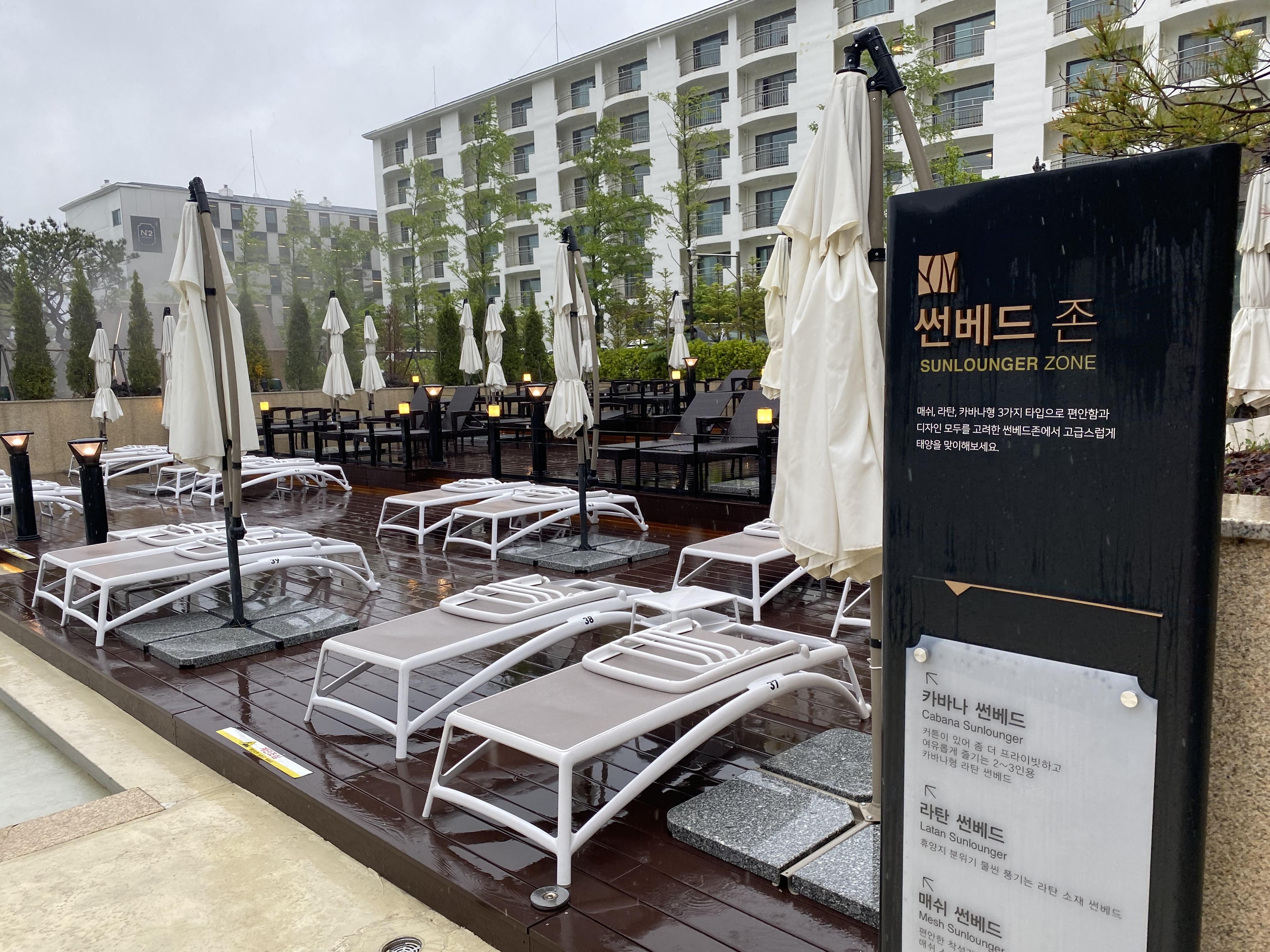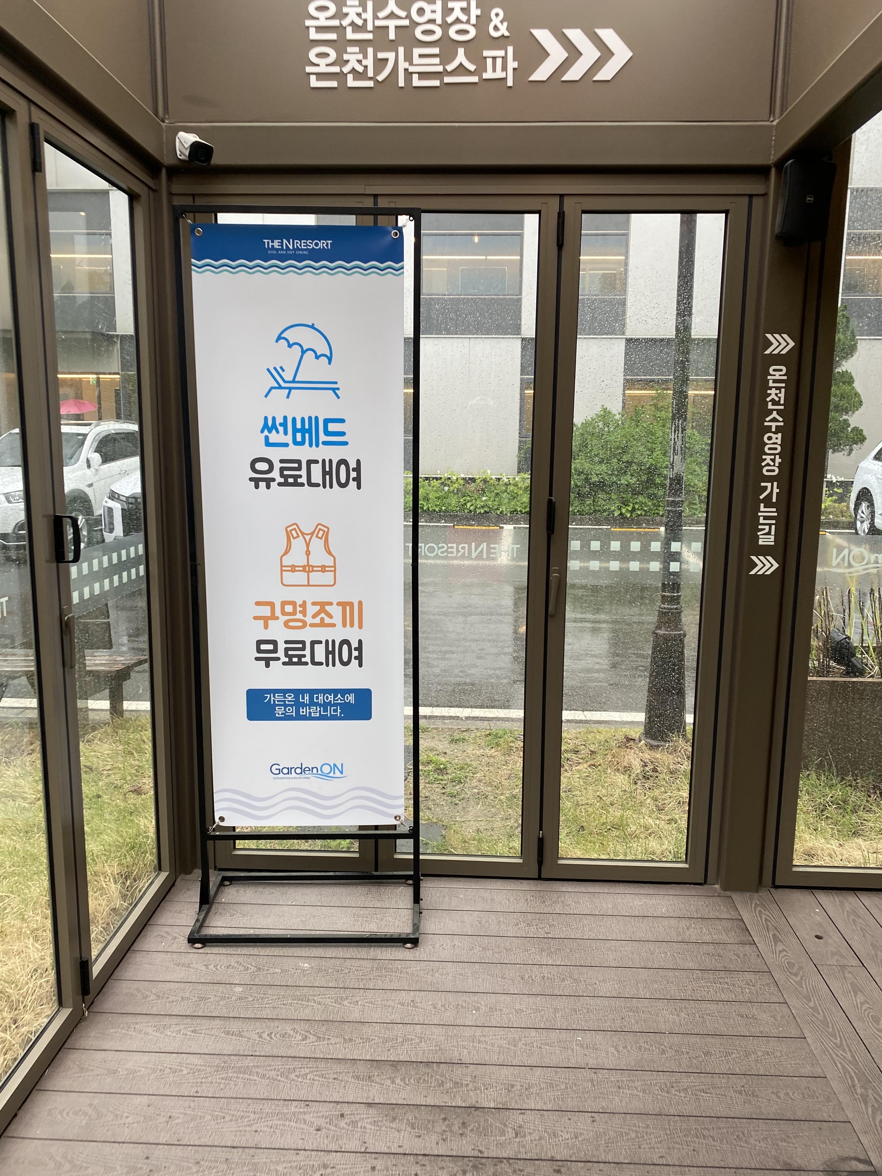 참고로 더앤리조트 온천 수영장은 슬리퍼와 모자는 필수 착용해야합니다. 아무래도 온천수라 관리를 하는거 같습니다.