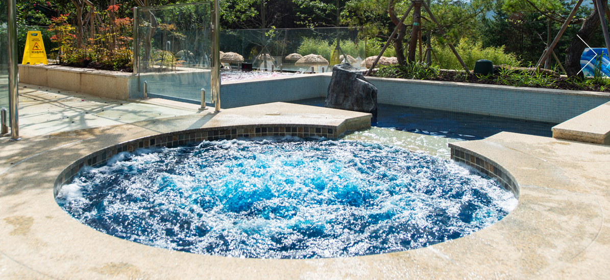 야외 수영장에 테마별로 온천이 있습니다. 포세이돈, 비너스, 은하수 등 효능이 다른 온천수가 있어서 다양하게 즐길 수 있습니다.