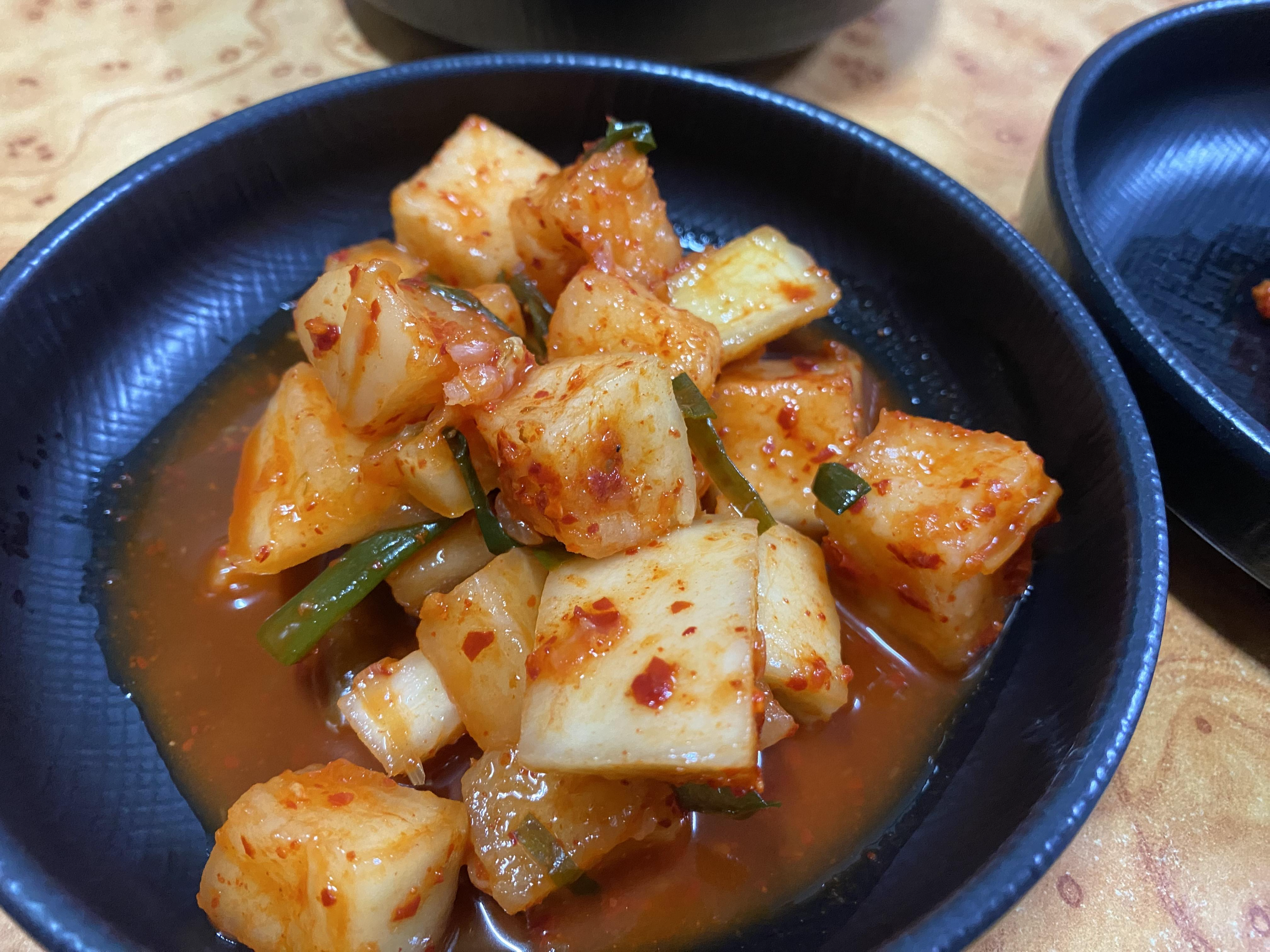 김치는 배추김치와 깍두기가 제공되는데 둘다 정말 맛있었지만, 깍두기가 더욱 맛있었습니다.