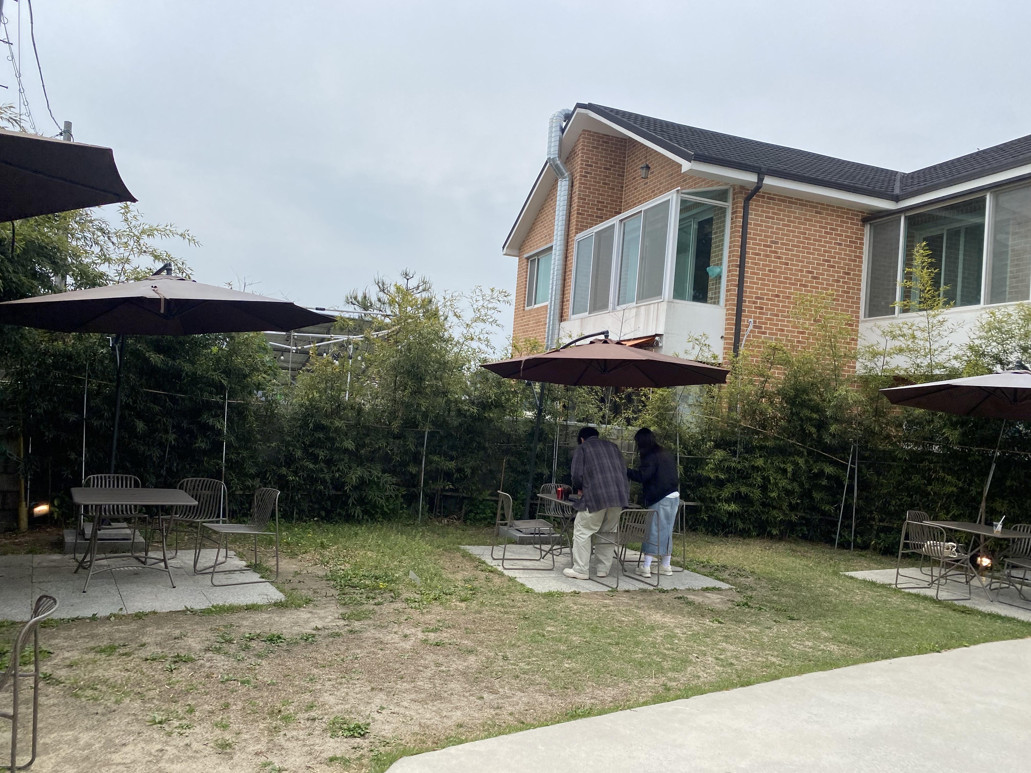 야외에는 테라스가 있어서 애견동반이 가능한 장소입니다. 날씨가 좋을 때는 강릉의 자연을 만끽하면서 초당버거를 먹을 수 있는 곳입니다.