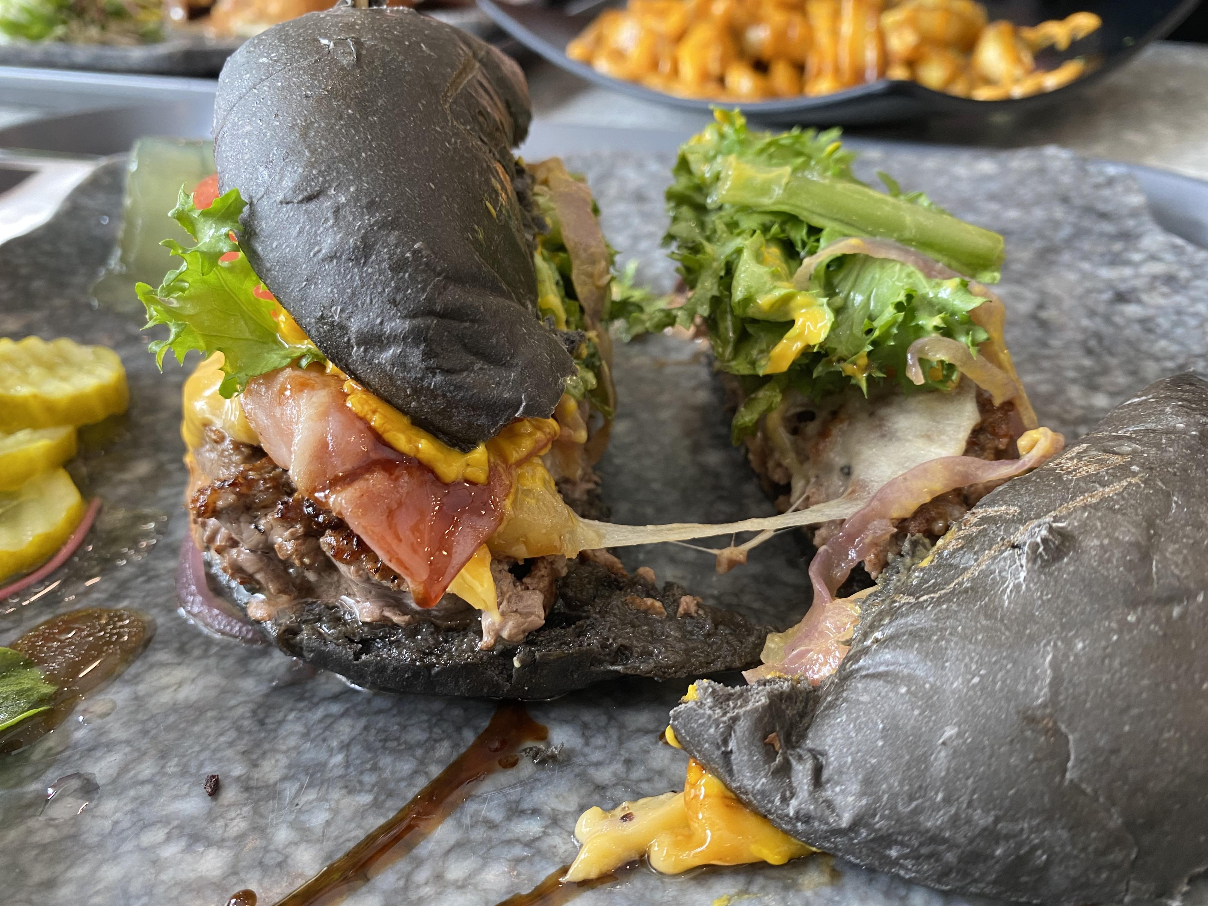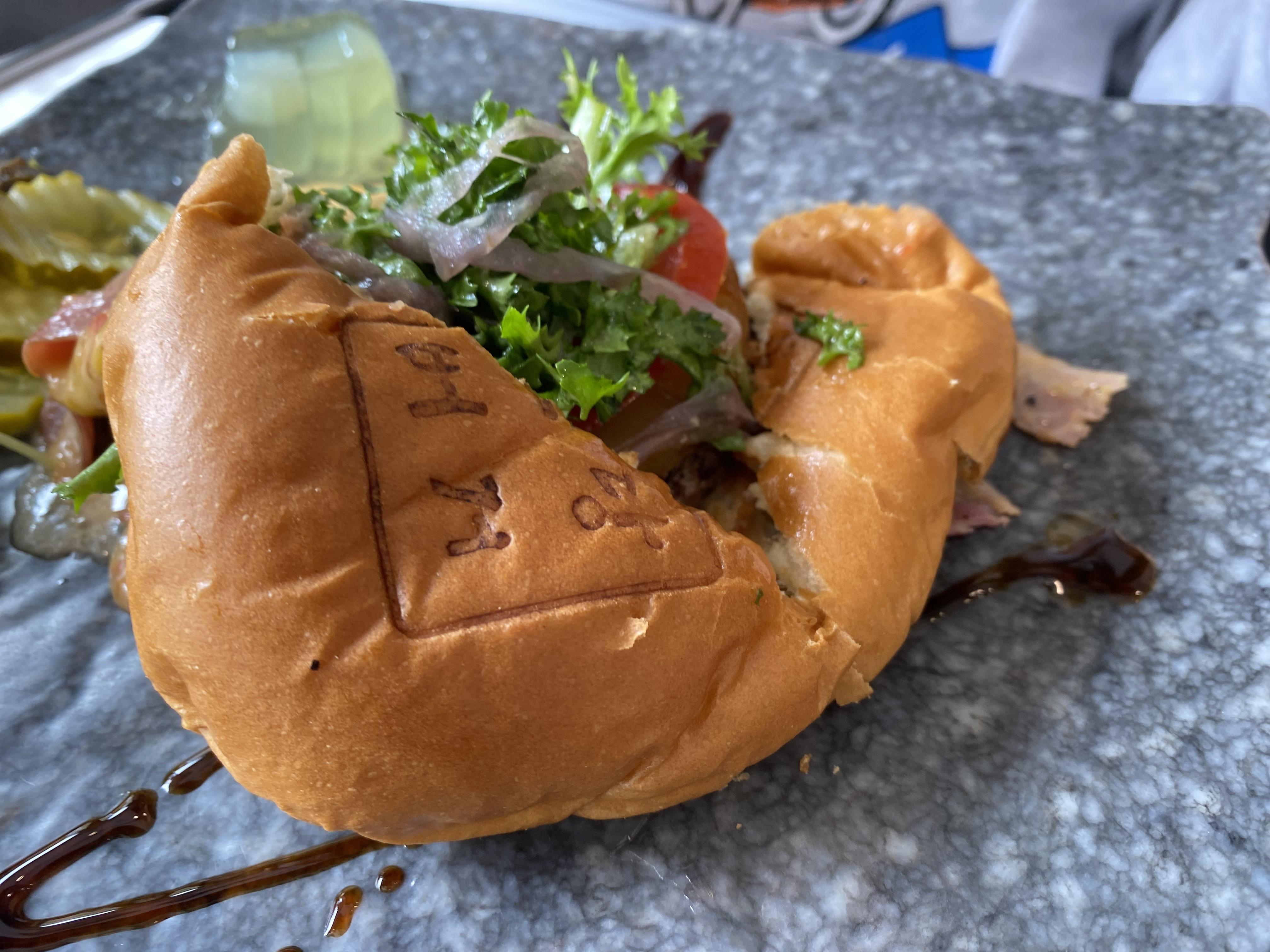한입에 먹기에는 불편하기 때문에 반으로 자르거나 먹기 좋게 잘라서 먹어야 합니다. 한입 먹으면 버거소스와 패티 육즙이 나오기 때문에 이쁘게 먹는 건 포기해야 하지만 맛은 있었습니다.