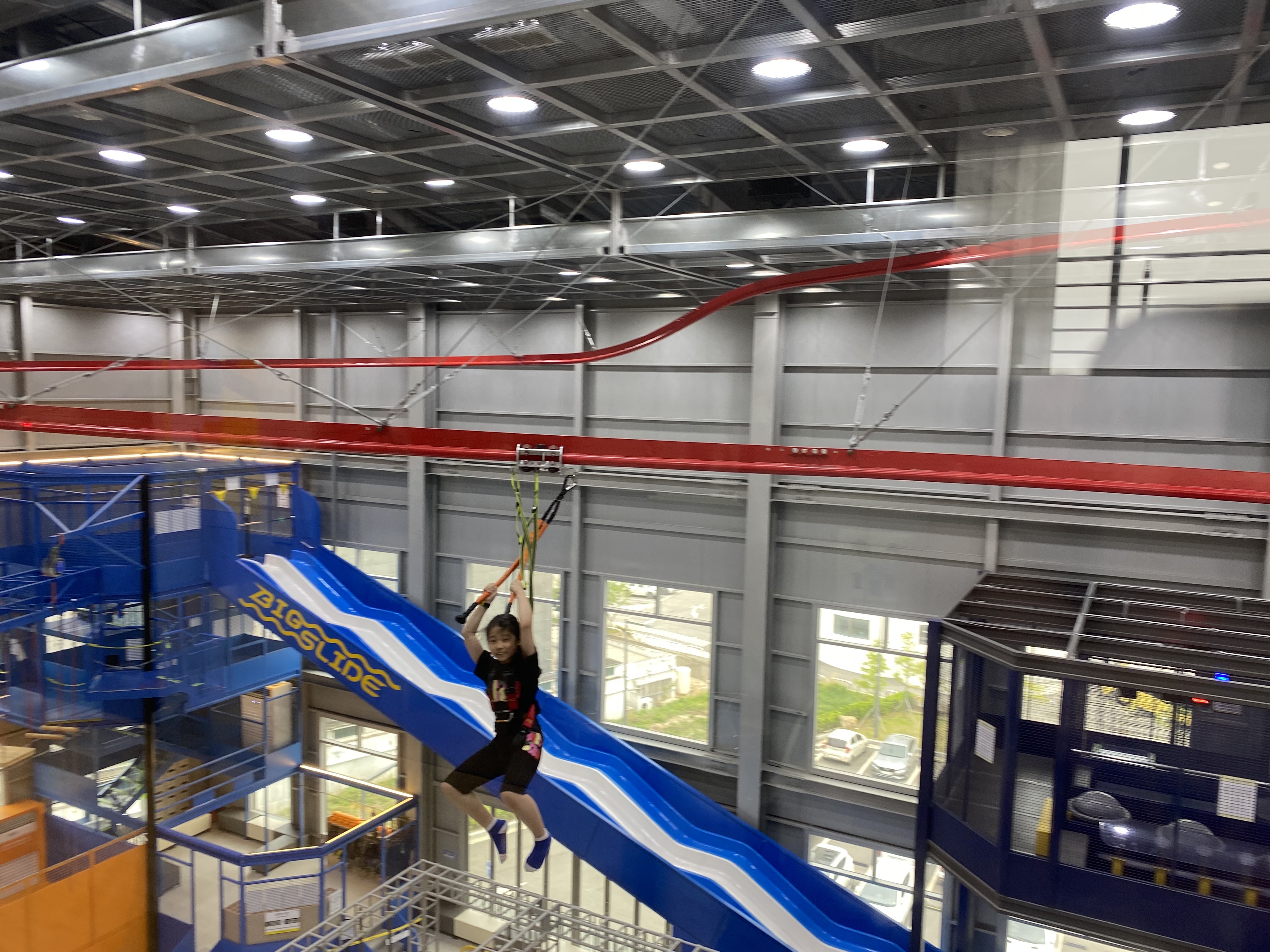 3층은 어트랙션존 점핑하이 / 스카이워크 / 빅슬라이드 / 닌자 워리어 / 스피드 탭탭 / 클립앤 클라임 / 플라잉 드롭