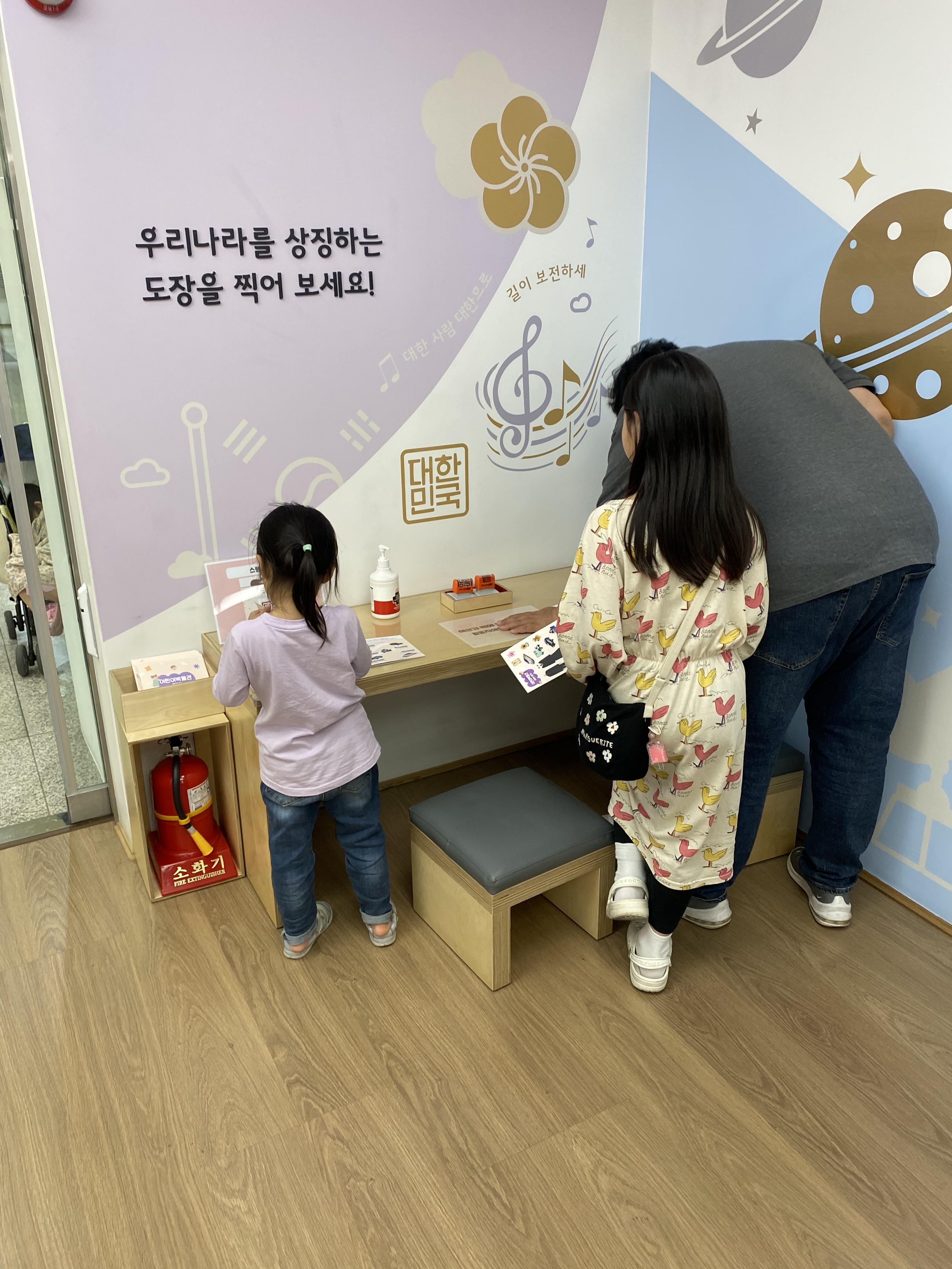 입구 쪽에는 우리나라를 상징하는 도장을 찍는 곳이 있습니다.