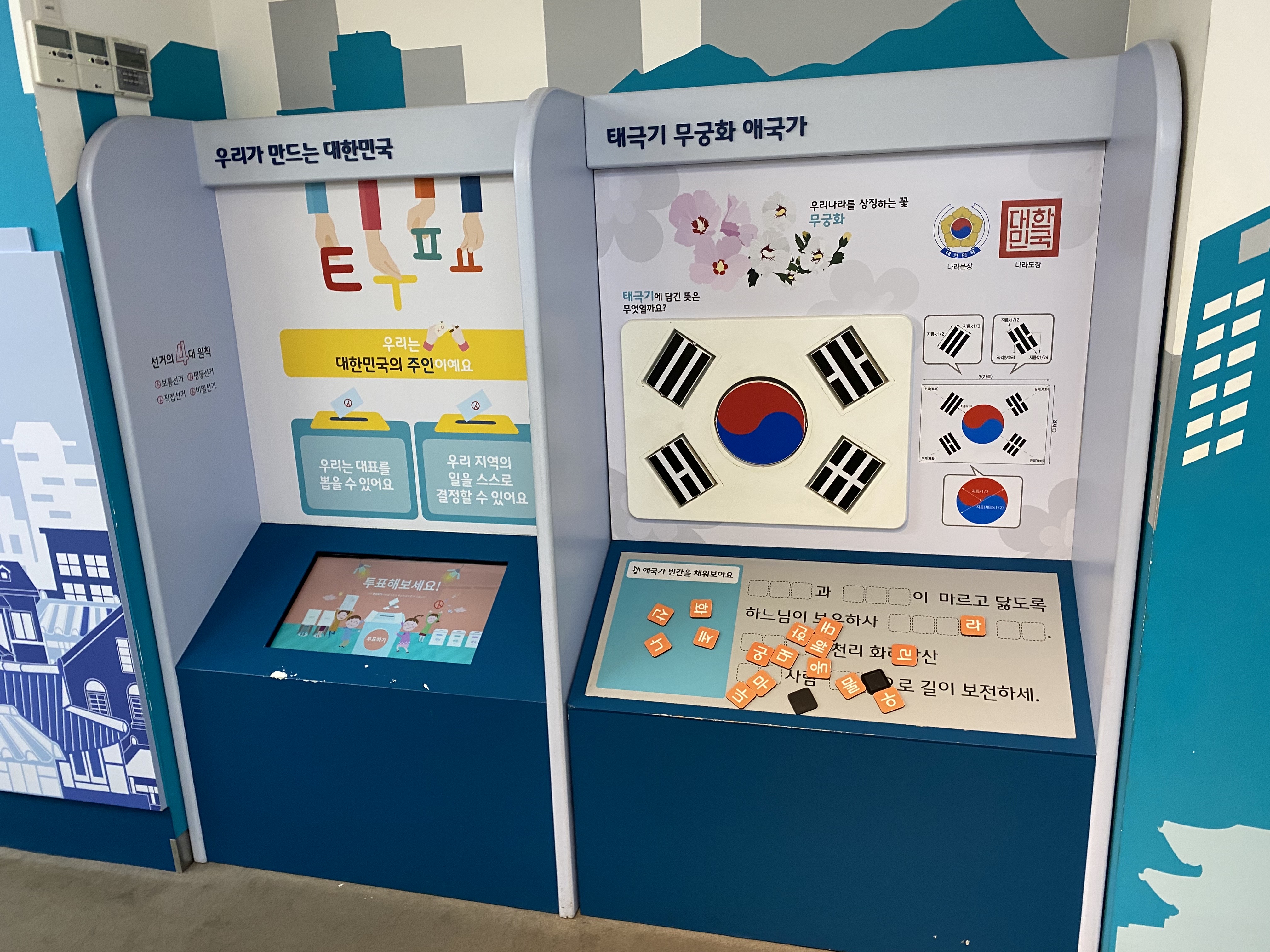 대한민국의 선거제도에 대한 경험과 국기와 애국가를 체험할 수 있는 공간입니다.