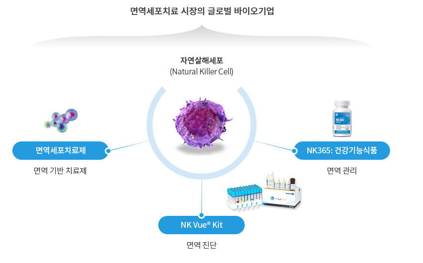 엔케이맥스를 흡수합병하고 회사명을 주식회사 엔케이맥스로 변경하였습니다. 엔케이맥스의 합병 후 주요 사업 분야는 크게 (1) 면역세포치료제 사업, (2) 면역진단키트 사업, (3) 건강기능식품 판매 사업, (4) 바이오 연구용 시약 사업으로 나눌 수 있습니다. 면역진단과 더불어 치료가 필요한 경우 면역치료를 활용한 치료제를 제공하고, 면역건강을 관리하고 예방을 위해서는 건강기능식품을 제공하는 면역 관련 통합 솔루션을 제공하는 사업 영역을 가지고 있습니다.