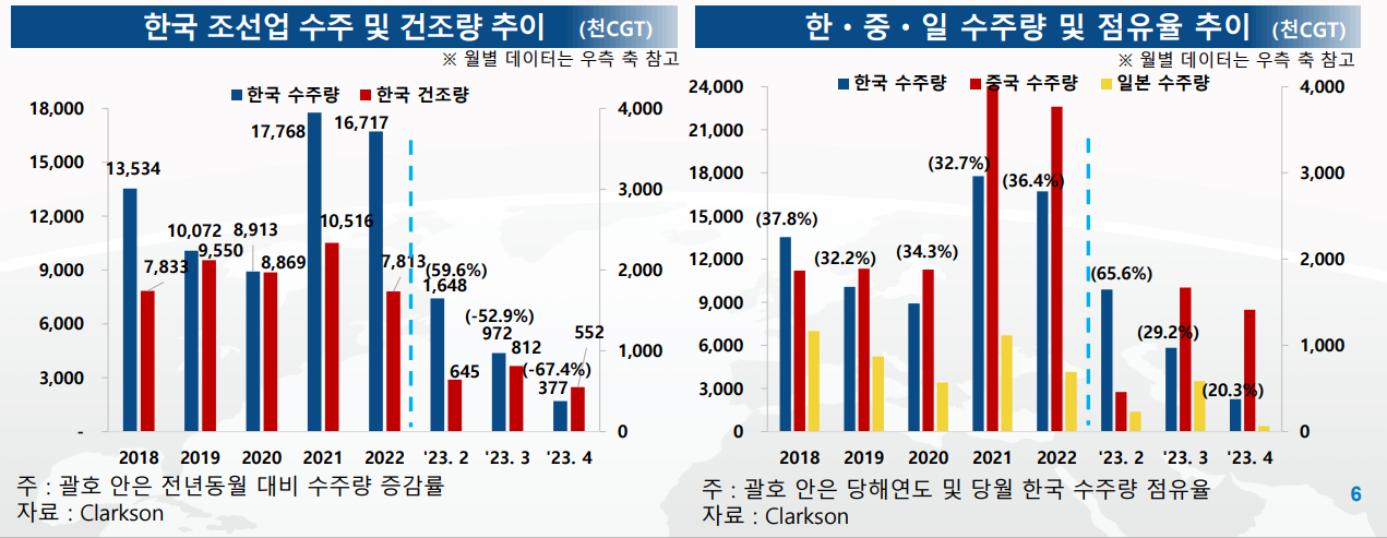 • 4월, 세계 신조선 시장은 고금리 기조 등으로 선주들의 관망세가 지속되며 발주 부진 지속