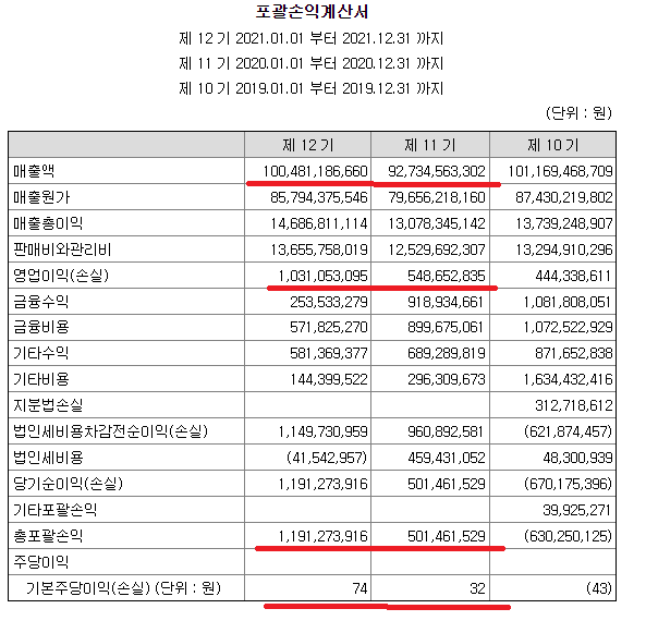영업실적이 개선된 모습을 보여주고 있습니다.