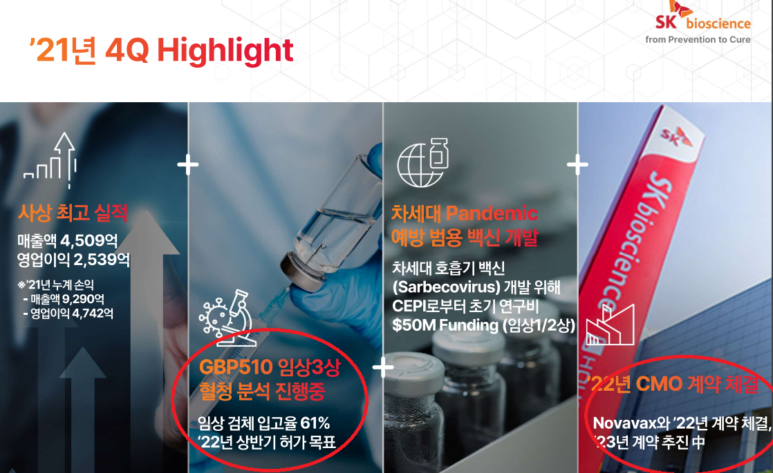 SK바이오사이언스 4분기 사업보고서를 보면 GBP510의 임상 3상 혈청 분석 진행 중이며,
