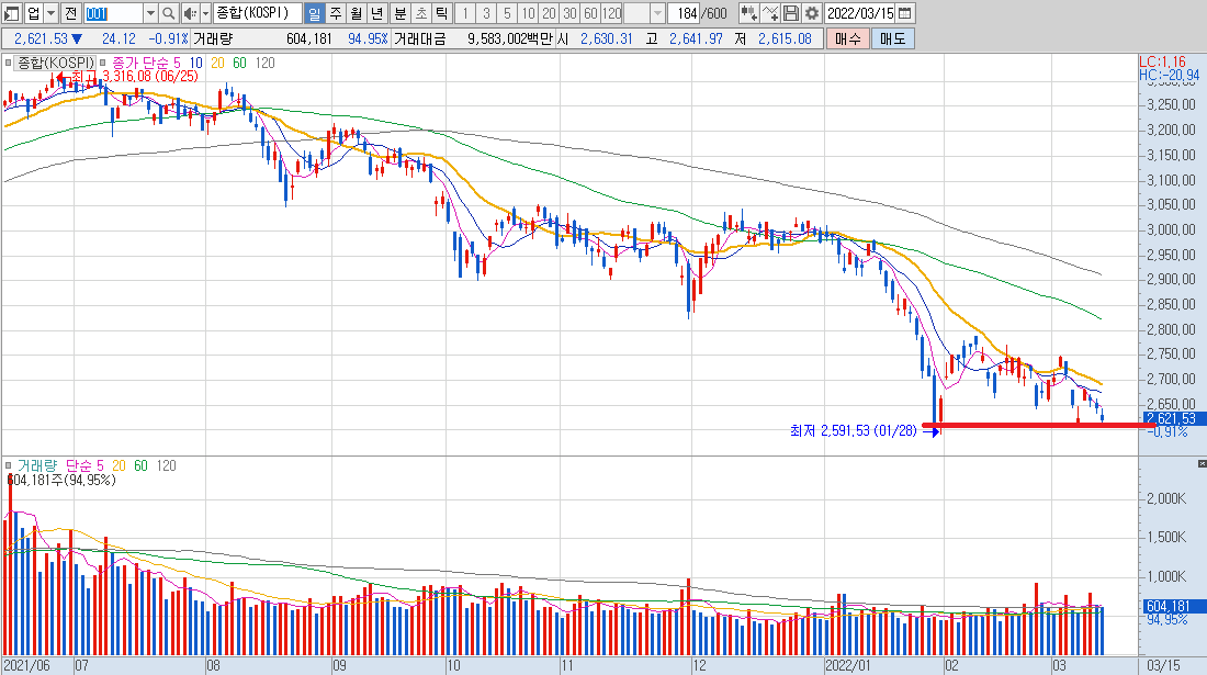 국내 시장 -0.91% 하락 마감을 하면서 러시아 우크라이나 전쟁 리스크 우려로 인한