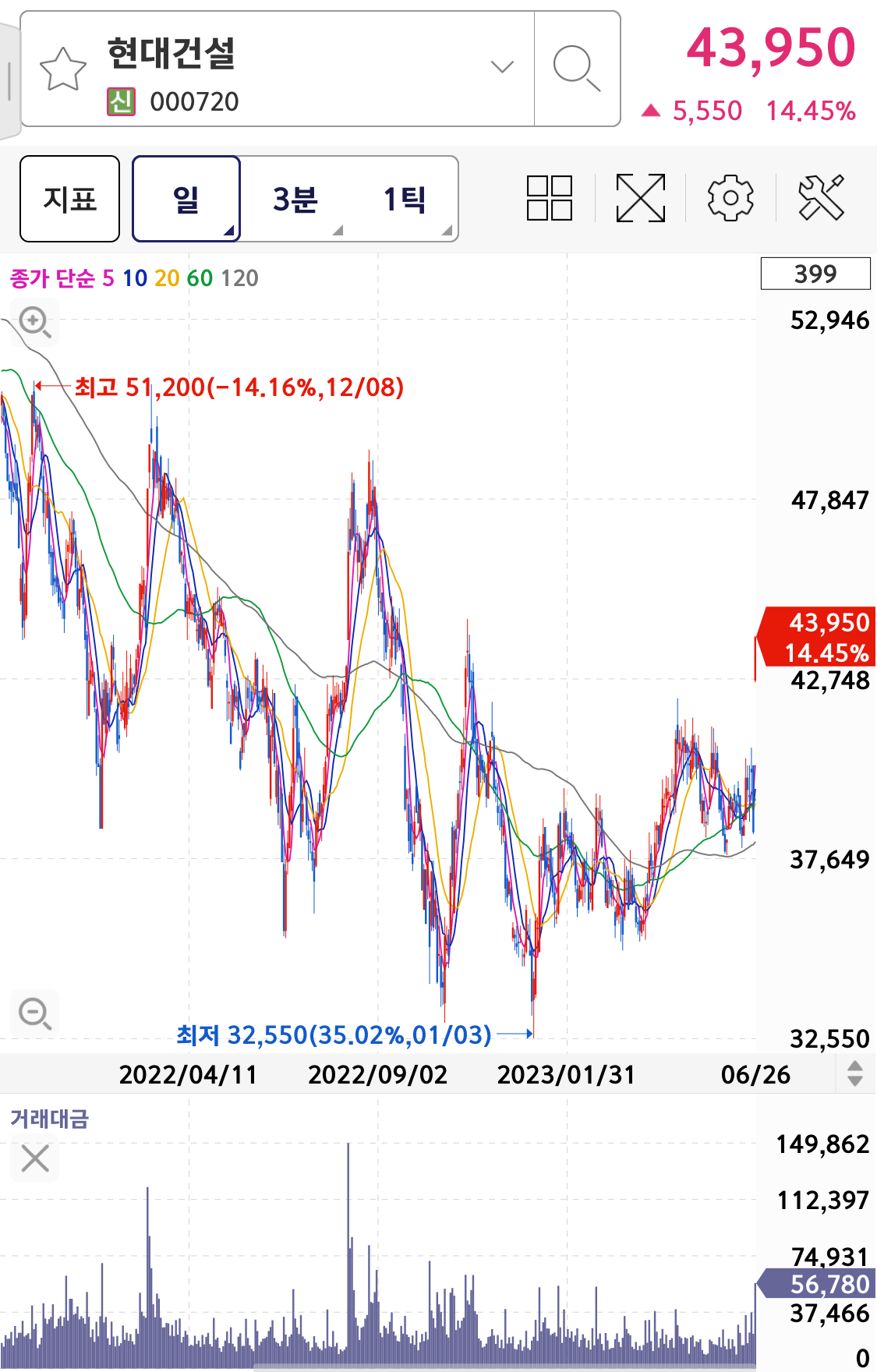 현대건설 차트