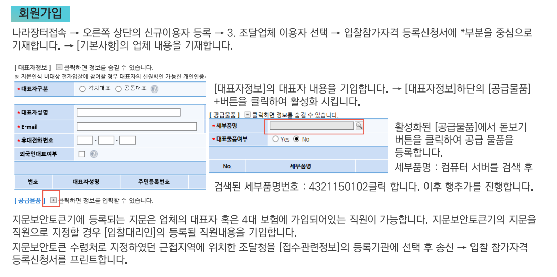 조달청에서 바로 지문등록을 양손을 다하고 왔습니다. 직원분께서 사용법을 잘 알려주십니다. 토큰기를 PC에 연결해서 등록을 하시고 각 대표전자조달 사이트에 등록을 하시면 입찰에 참여하실 수 있습니다.