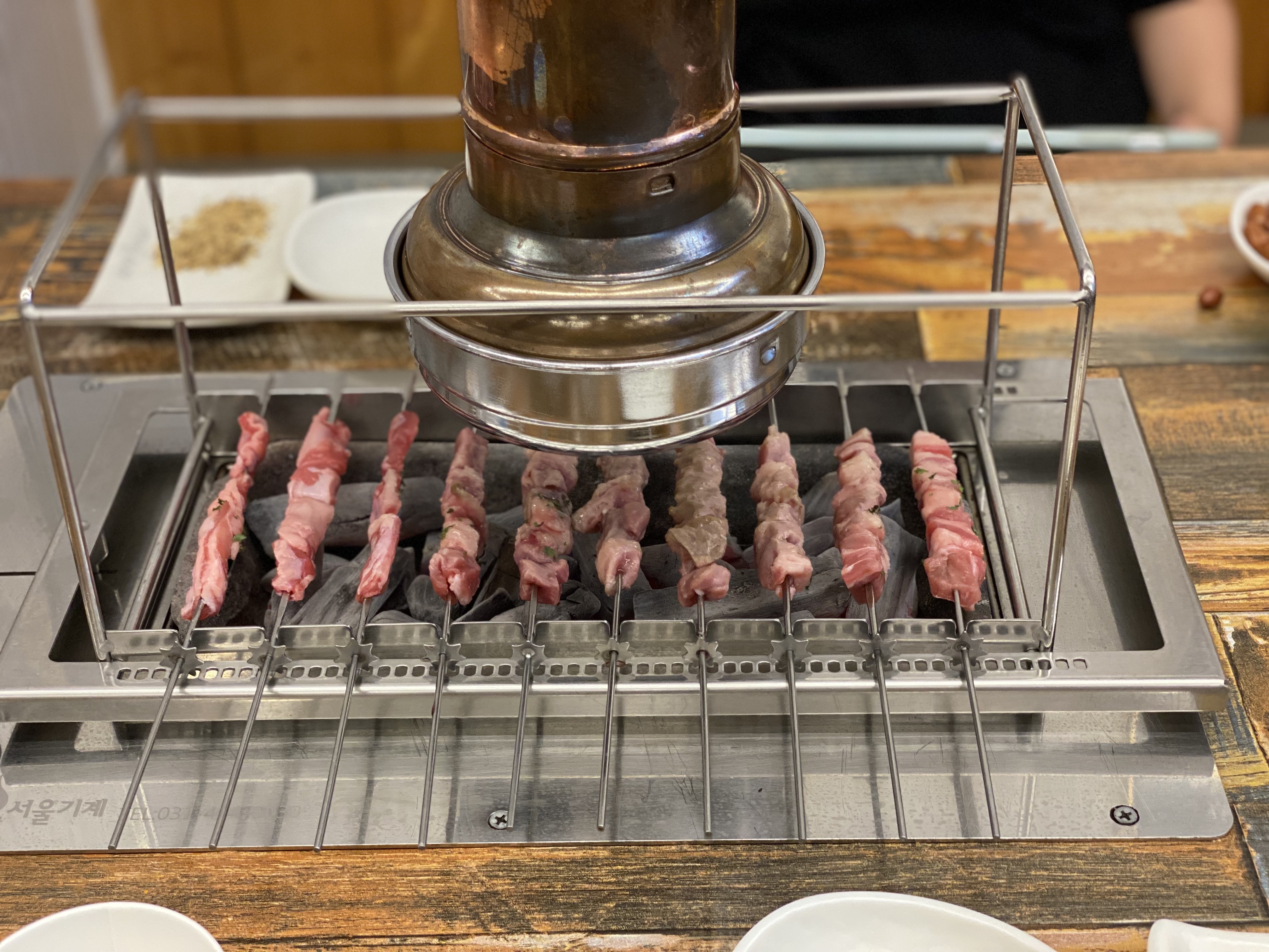 양꼬치 기계에 맛있게 구워줍니다. 배고픈 상태에서 가면 이렇게 굽는 시간도 너무 길게 느껴지더라구요.