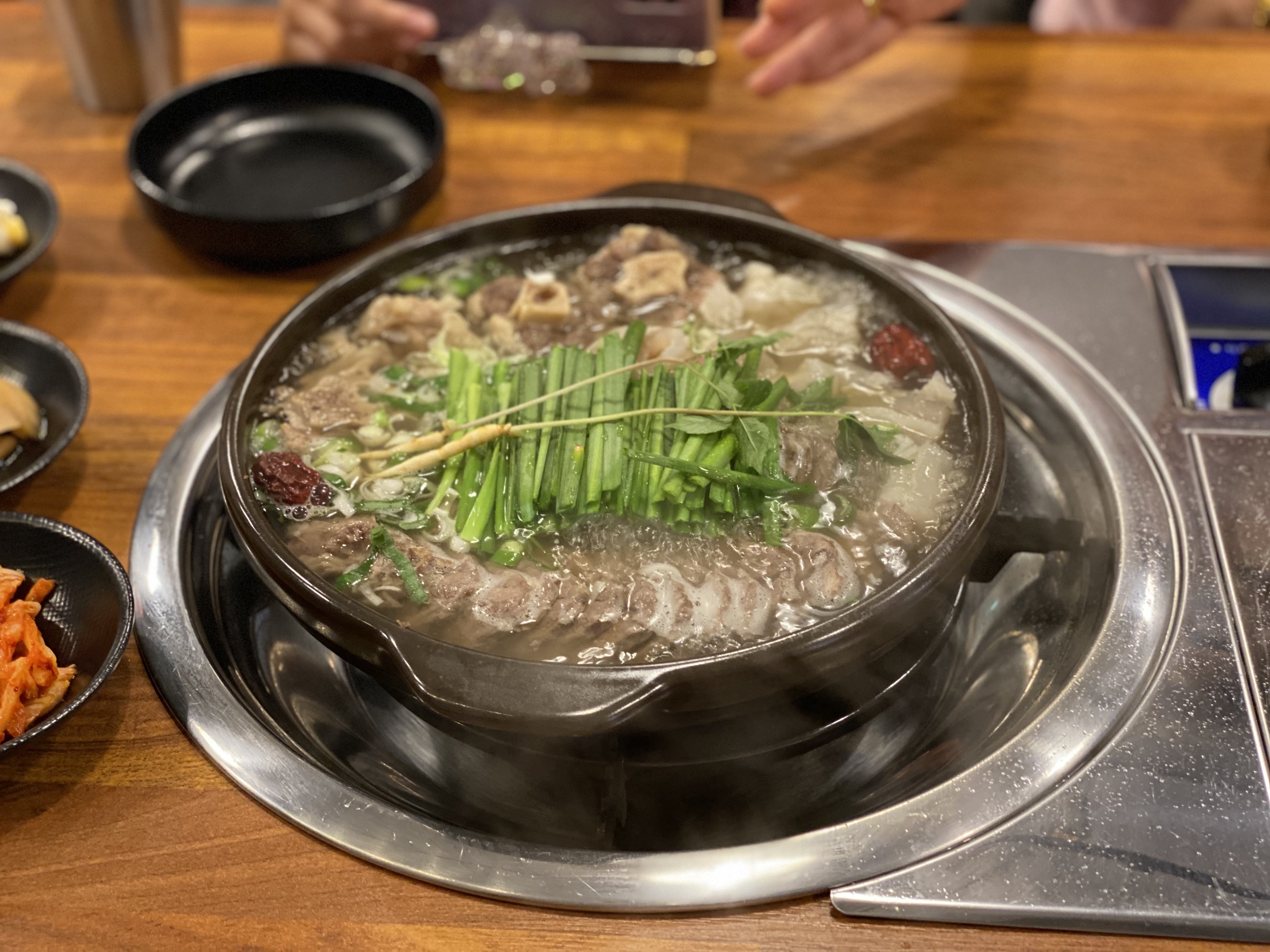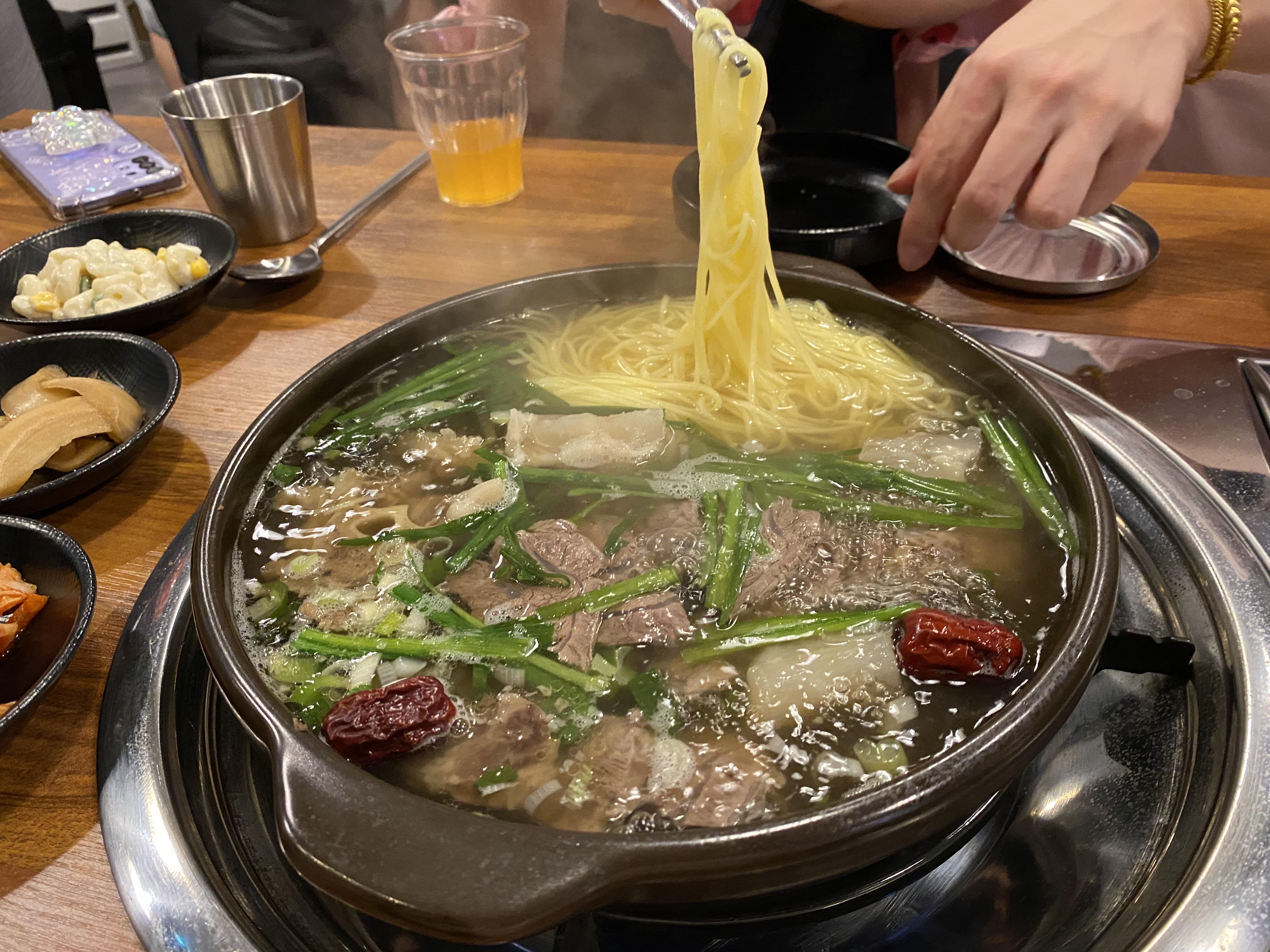 그리고 부추 아래에는 소꼬리, 스지, 아롱소태가 육수 속에 잠들어 있습니다.